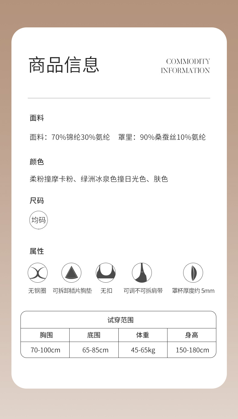 金三塔新品女士真丝轻薄无尺码内衣 NZFCA309