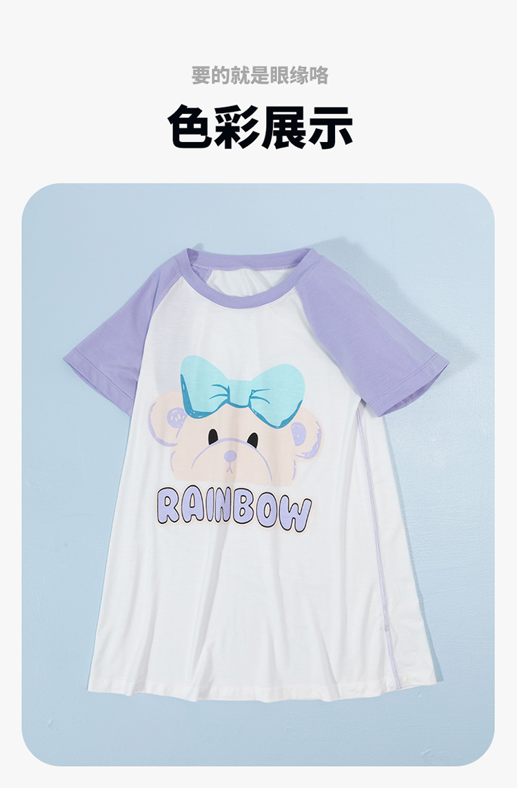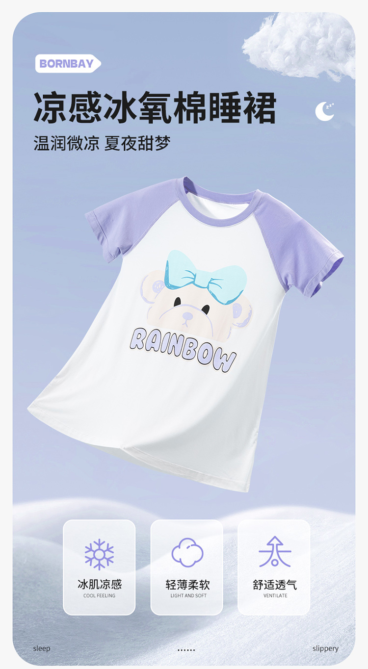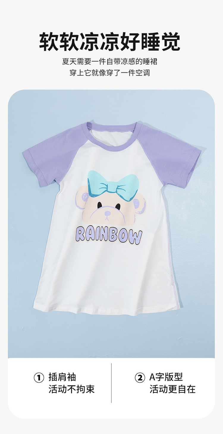 贝贝怡儿童睡裙女童2024新款卡通夏季短袖薄款女宝宝家居服连衣裙ZB2DQ020