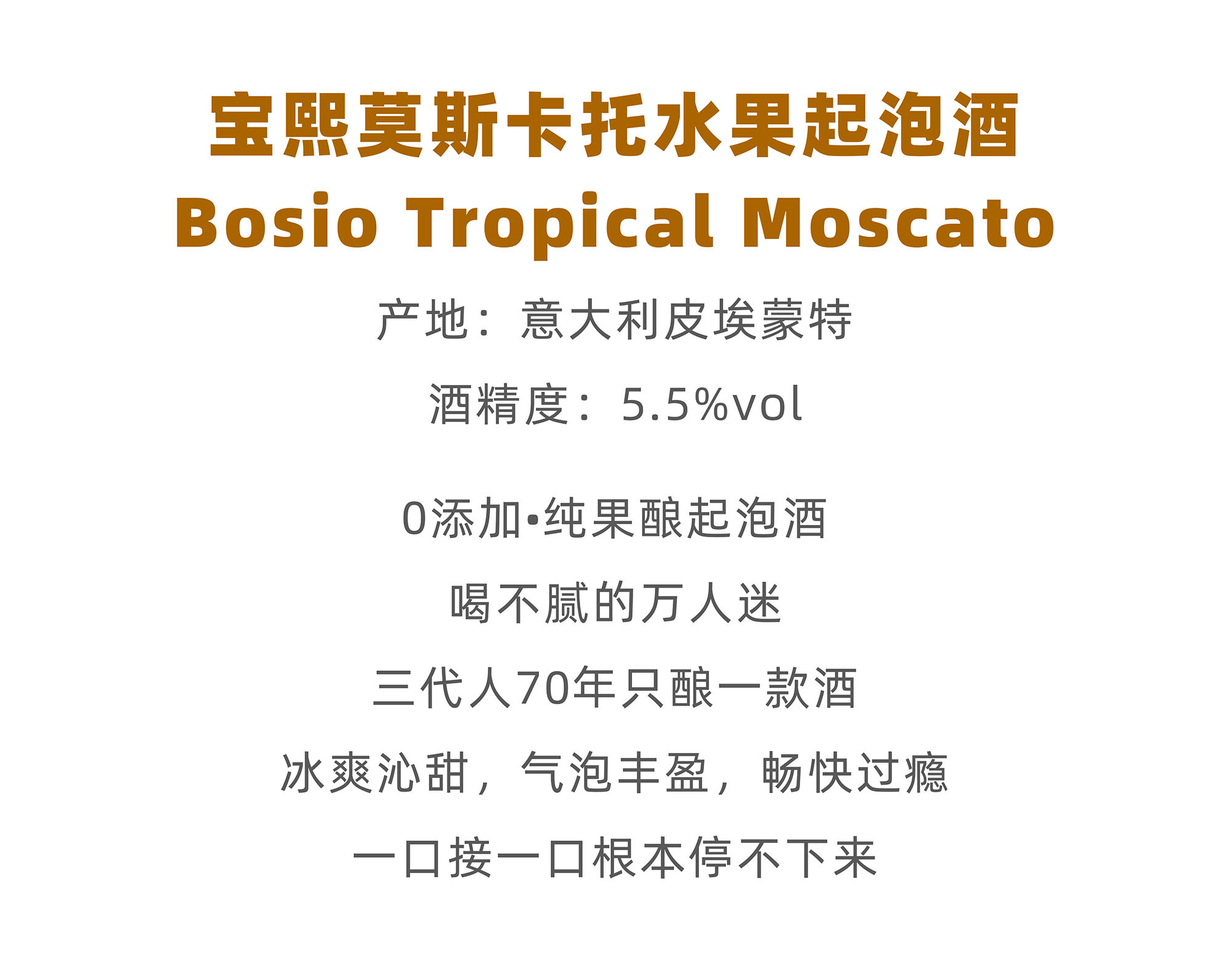 意大利宝熙莫斯卡托果味甜白葡萄酒 冰一冰更好喝 海外山姆开市客在售