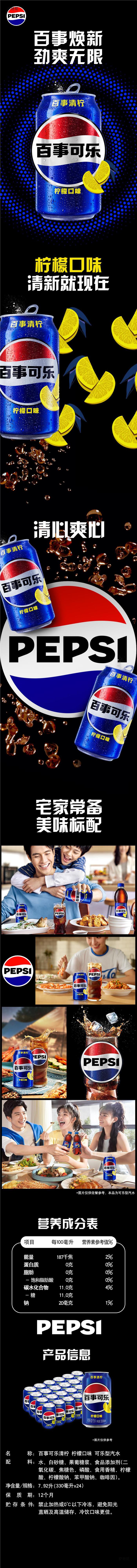 【6连罐】百事可乐碳酸饮料可乐汽水柠檬味330ml*6罐