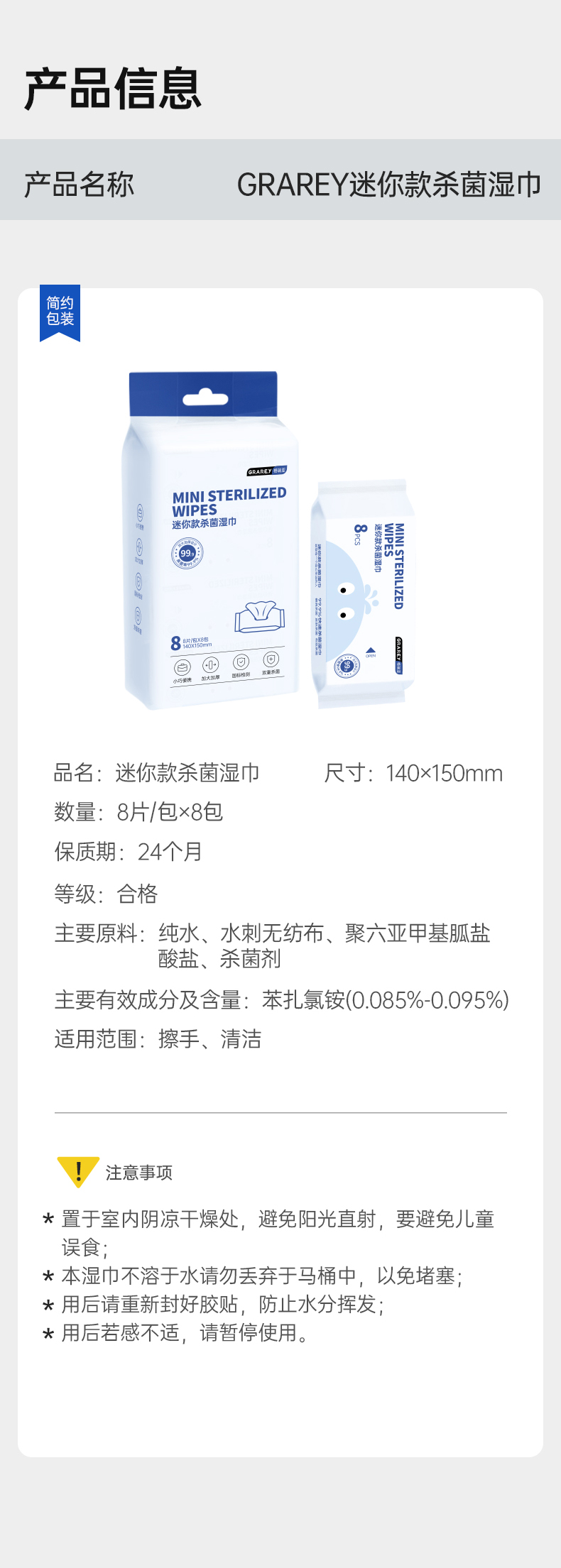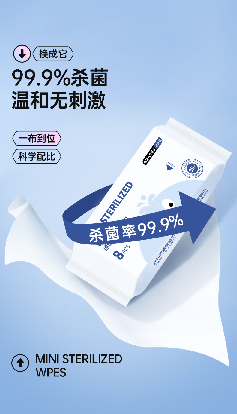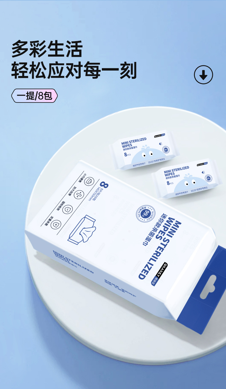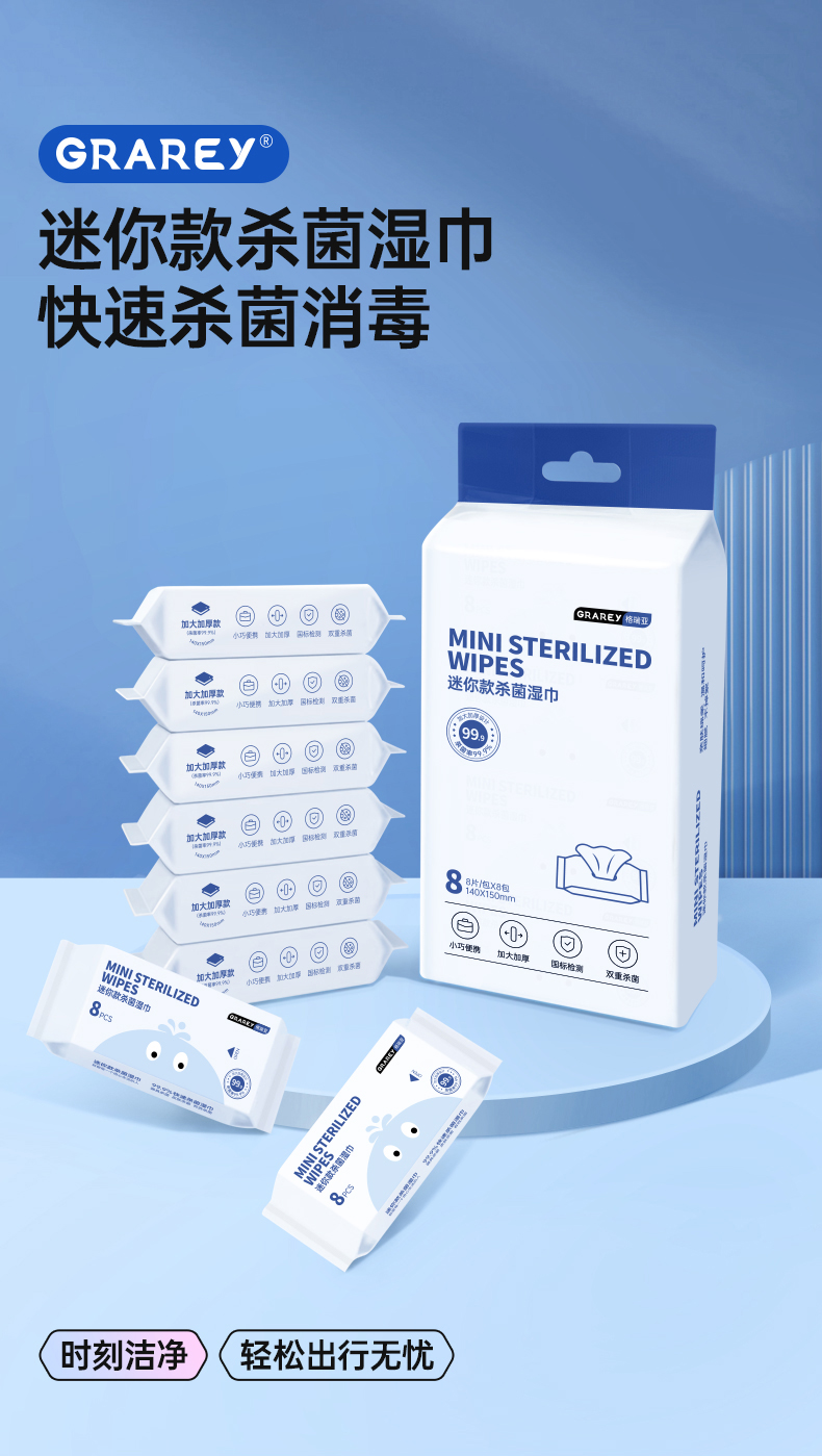 GRAREY(格瑞亚)迷你款杀菌湿巾 1提8抽每包8抽