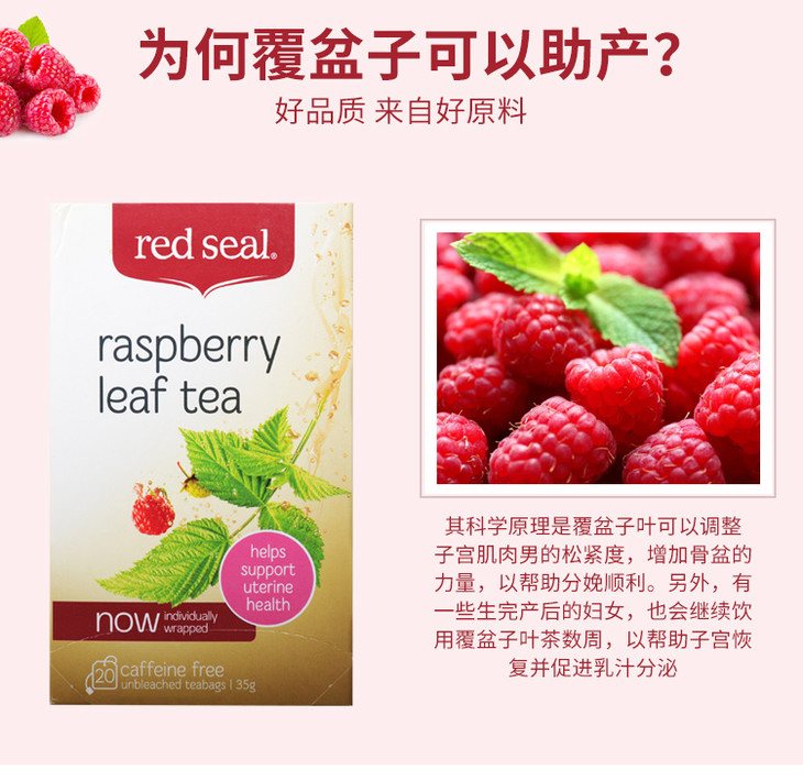 【保税仓】新西兰Red Seal红印覆盆子叶顺产茶 软化宫颈35g 20包/盒