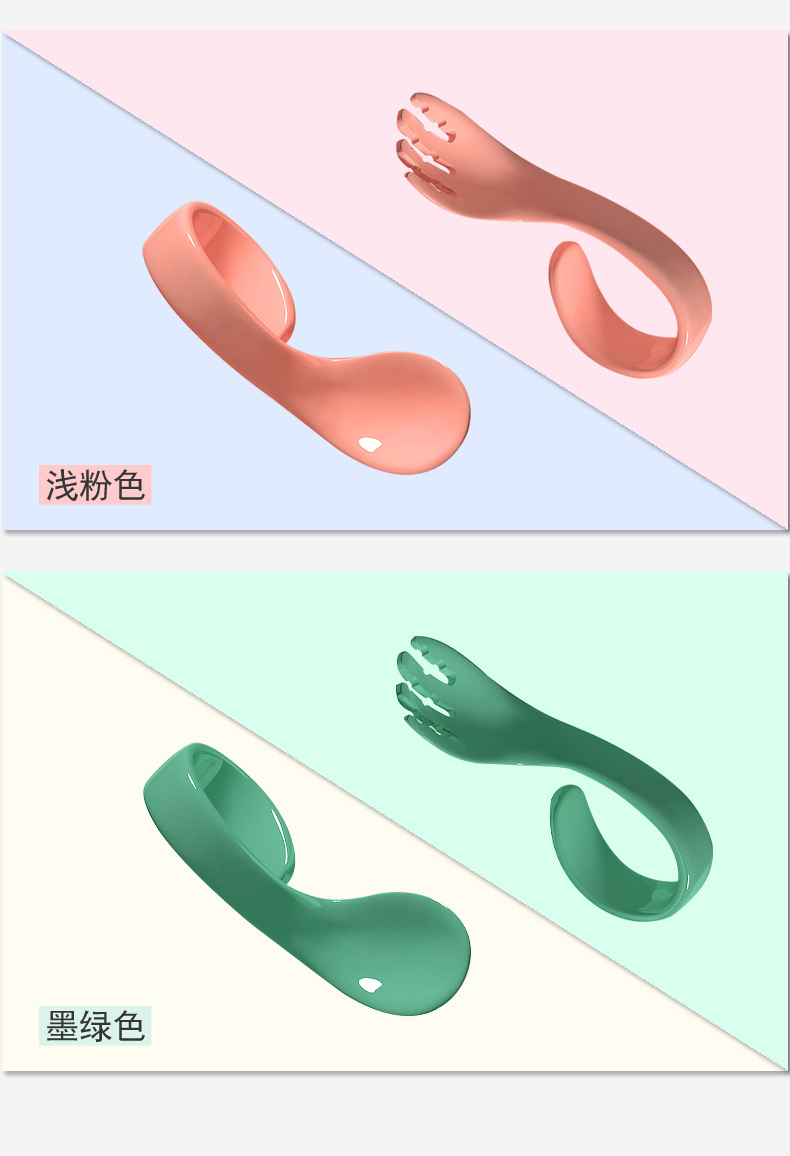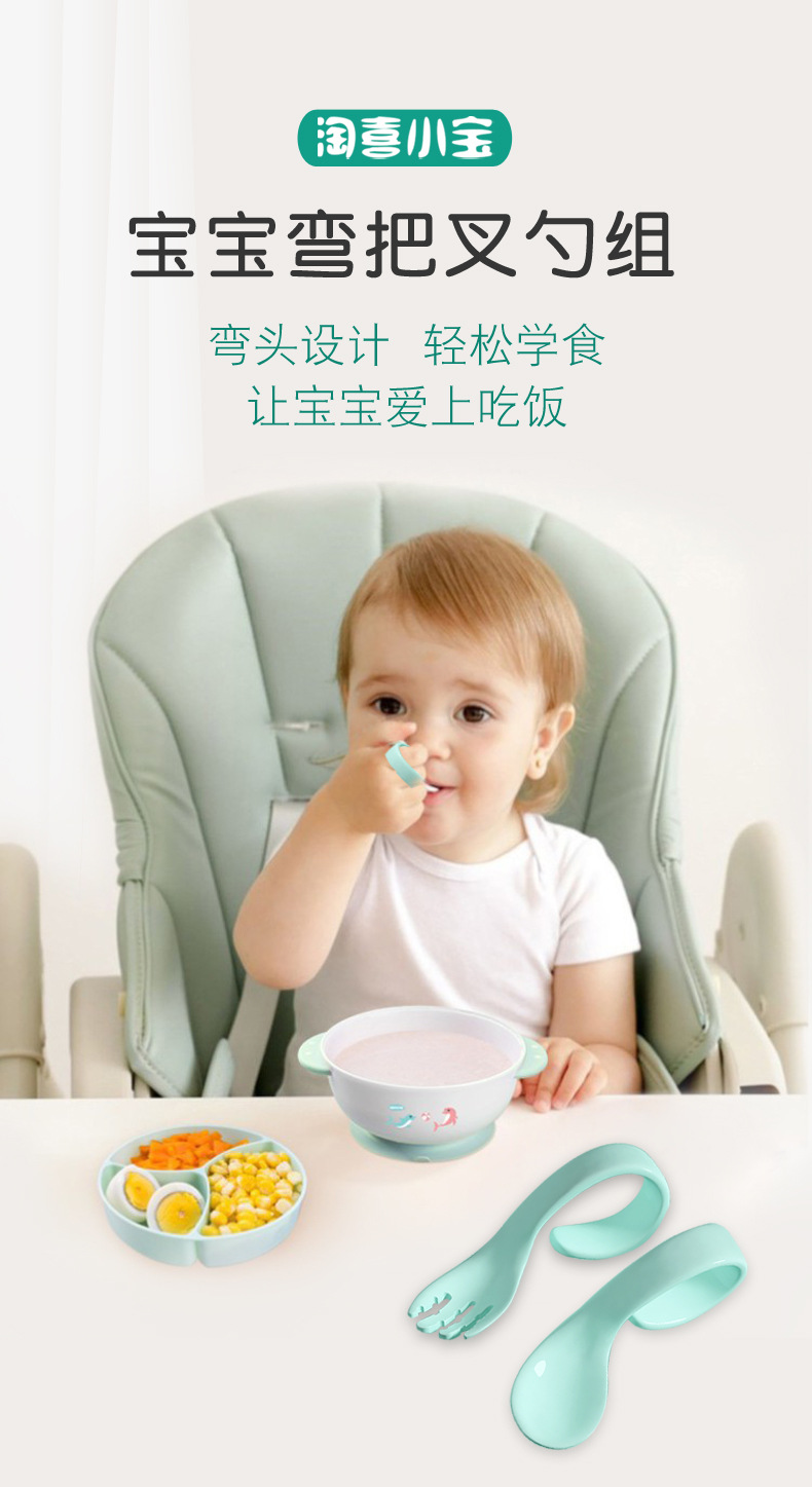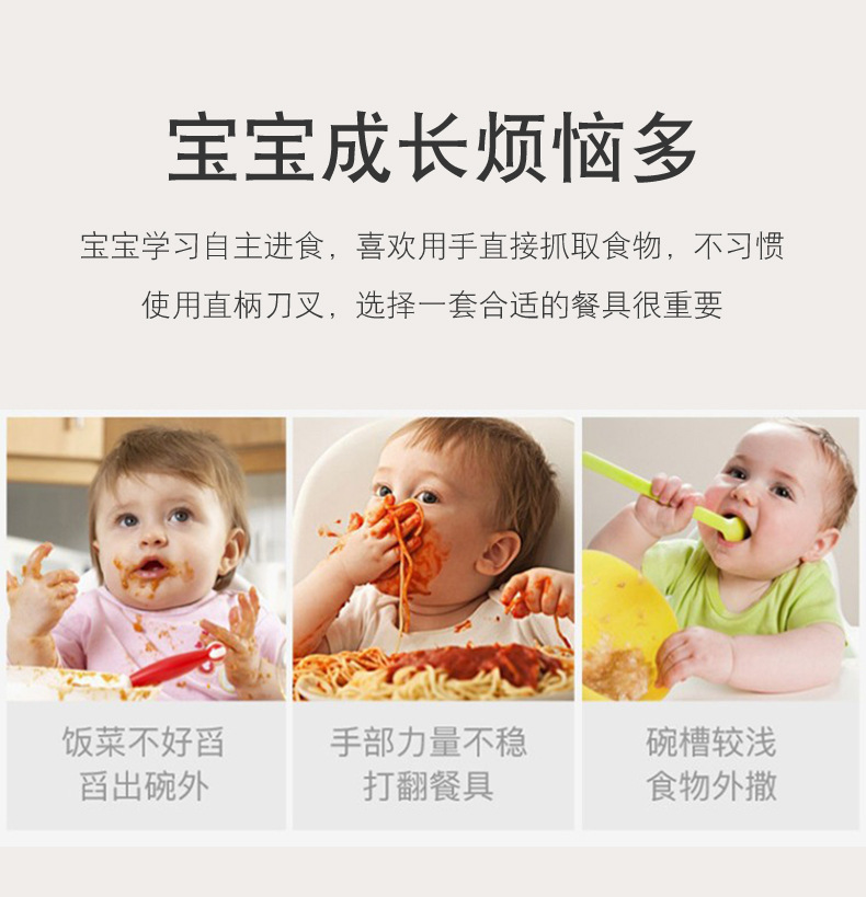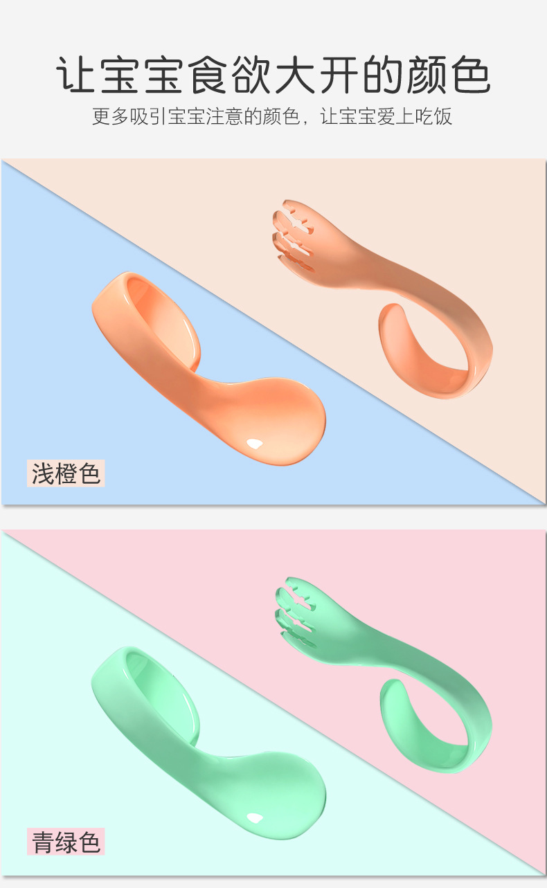宝宝弯把叉勺组婴幼儿学吃饭训练勺子套装儿童辅食餐具弯头叉勺组