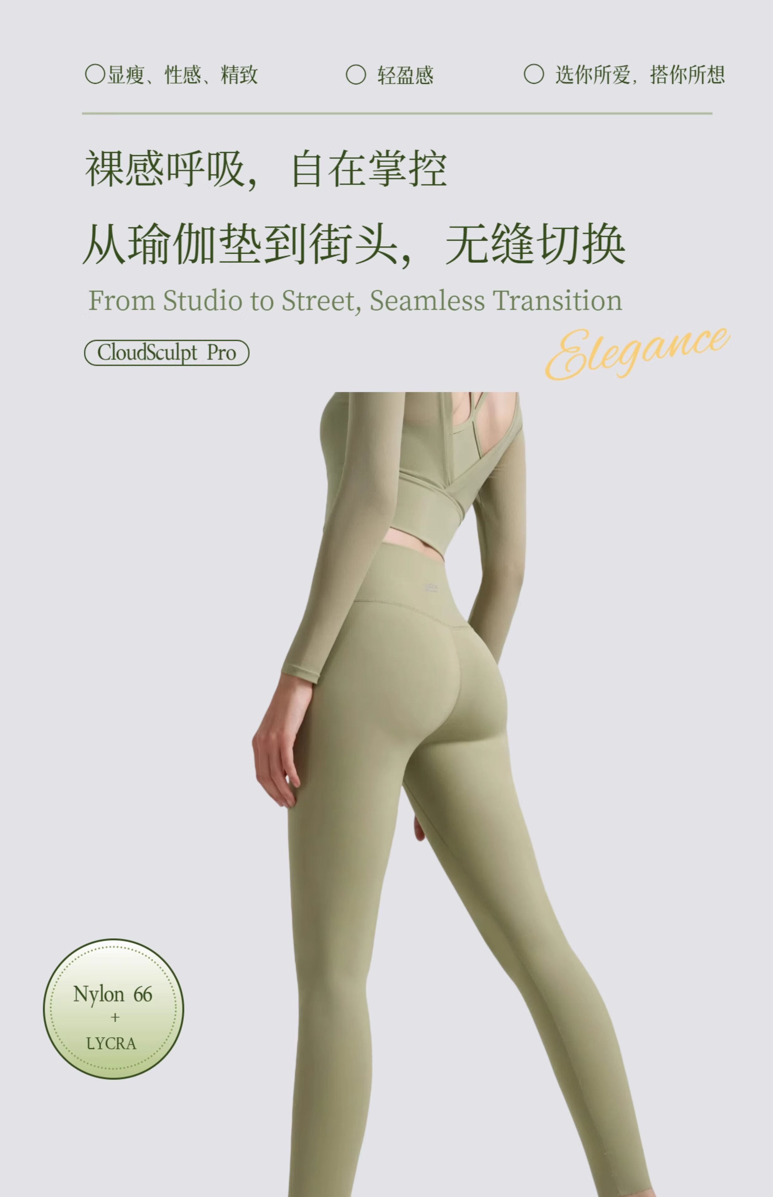 yokaland云感体雕裤APW022莱卡裸感无尴尬线运动训练瑜伽九分裤