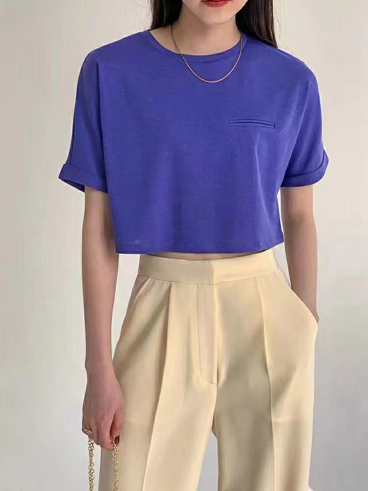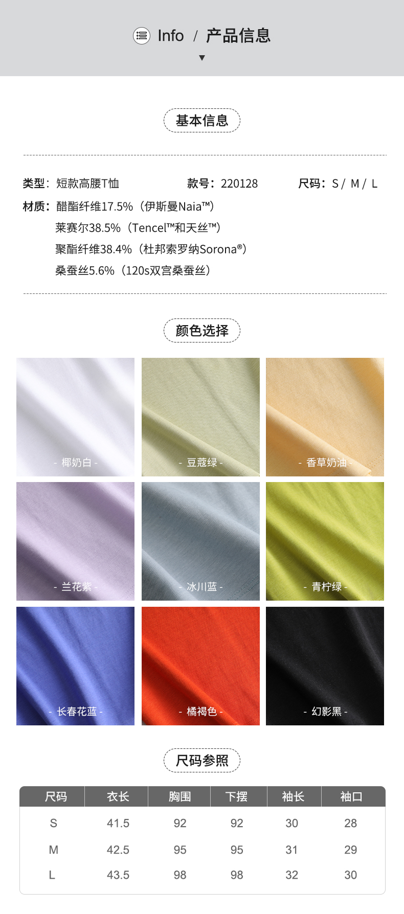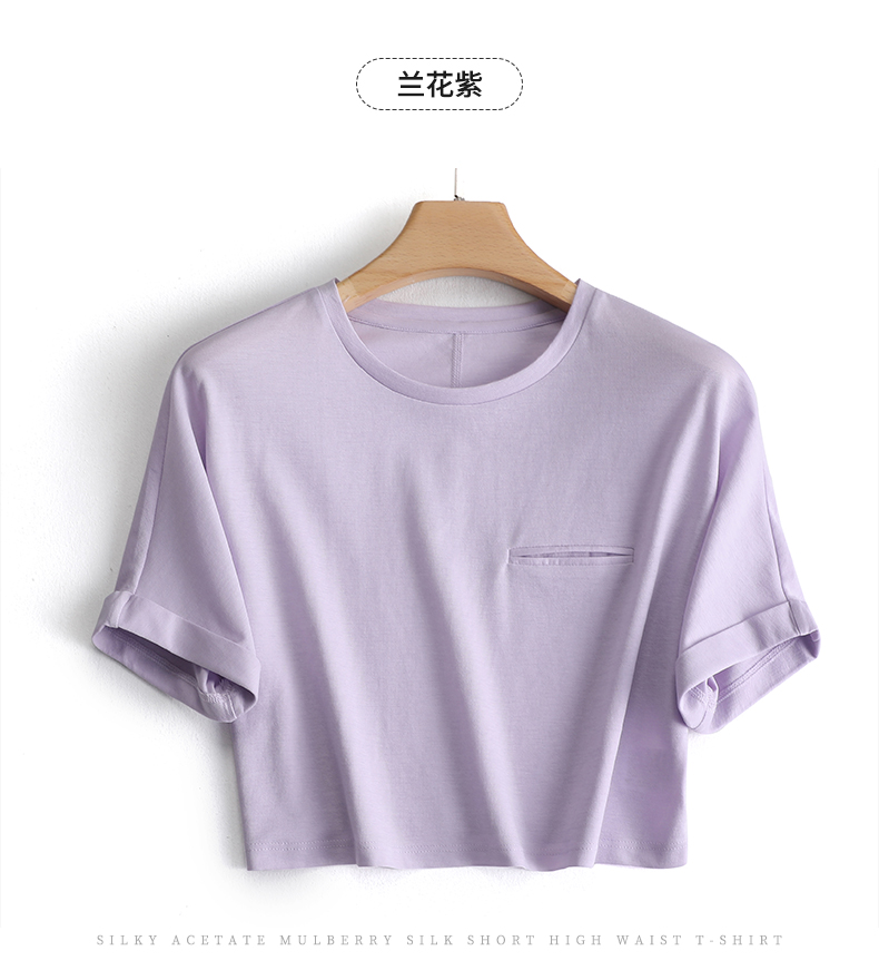 凉感维C科技 丝滑醋酸桑蚕丝短款高腰T恤220128