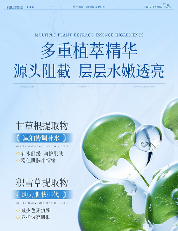 【2瓶更划算❗积雪草b5爽肤水】深润补水告别「大红脸」,复配保湿舒润成分,多重植萃精华,层层水嫩透亮玻尿酸,清爽温和柔肤水湿敷护肤化妆水QQ