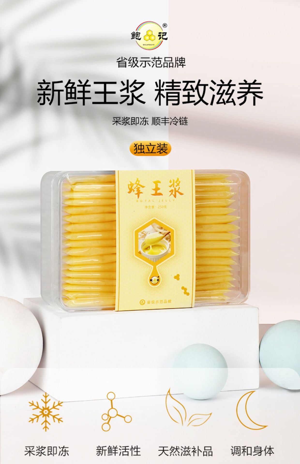 【食品酒水】农家自产鲍记便携式透明小袋包装5g*50袋蜂王浆 王胎蜂皇浆