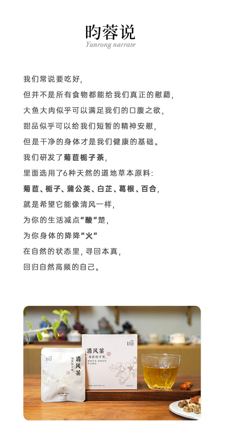 【昀蓉时光•清风茶】菊苣栀子茶,道地原料,多级筛选,不用碎料,不俱酸高,重归自由舒展,(18g*10袋/盒)(生产日期:2025年3月3日)
