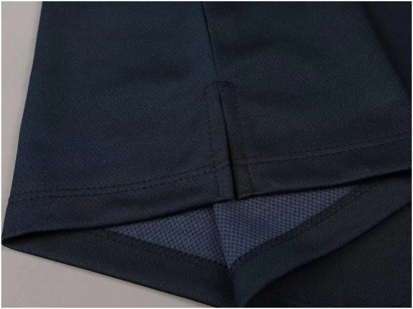 面料:吸湿排汗双面针织布(正面低弹丝内里CVC涤棉混纺)