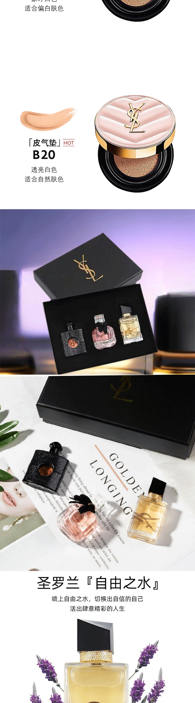 【赠香水小样三件套(7.5mlx3支)礼袋】YSL圣罗兰粉皮革气垫正装12g/黑皮革气垫正装14g一般贸易