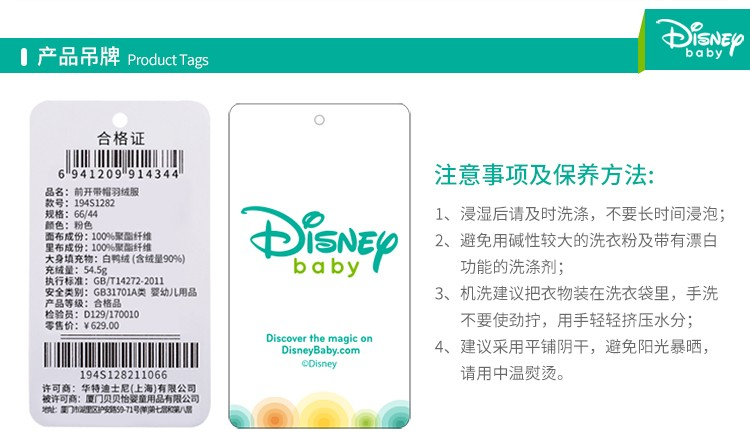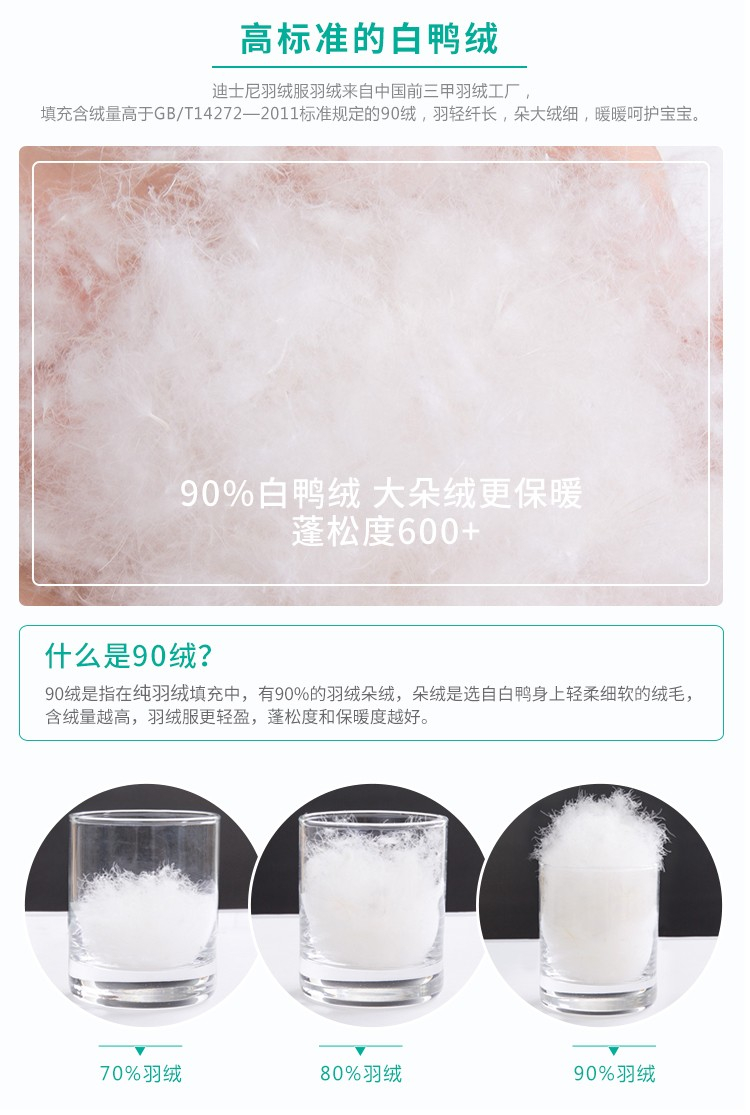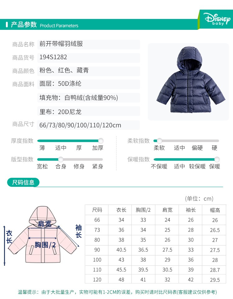 迪士尼(Disney)男女童加厚连帽羽绒服194S1282
