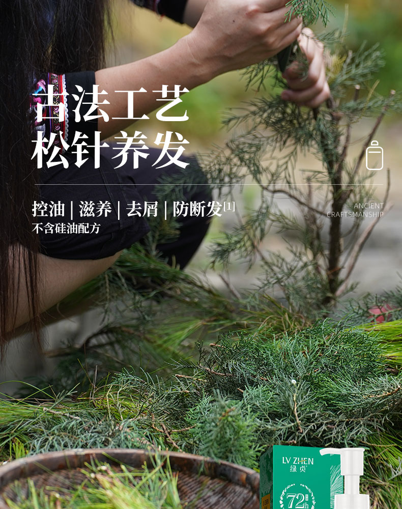 *自营*绿贞松针洗发水 | #壮家古方松针洗浴原液非遗传承工艺#不含硅油配方/控油/滋养/去屑/防断发。天然植物草本精华提取。长时滋润头皮清爽蓬松450mL。产自巴马水源地凤仙。