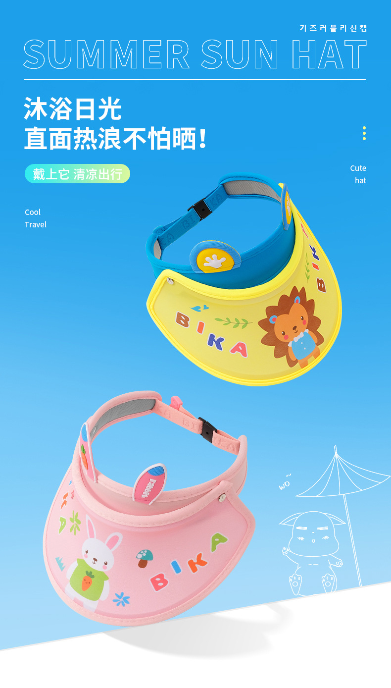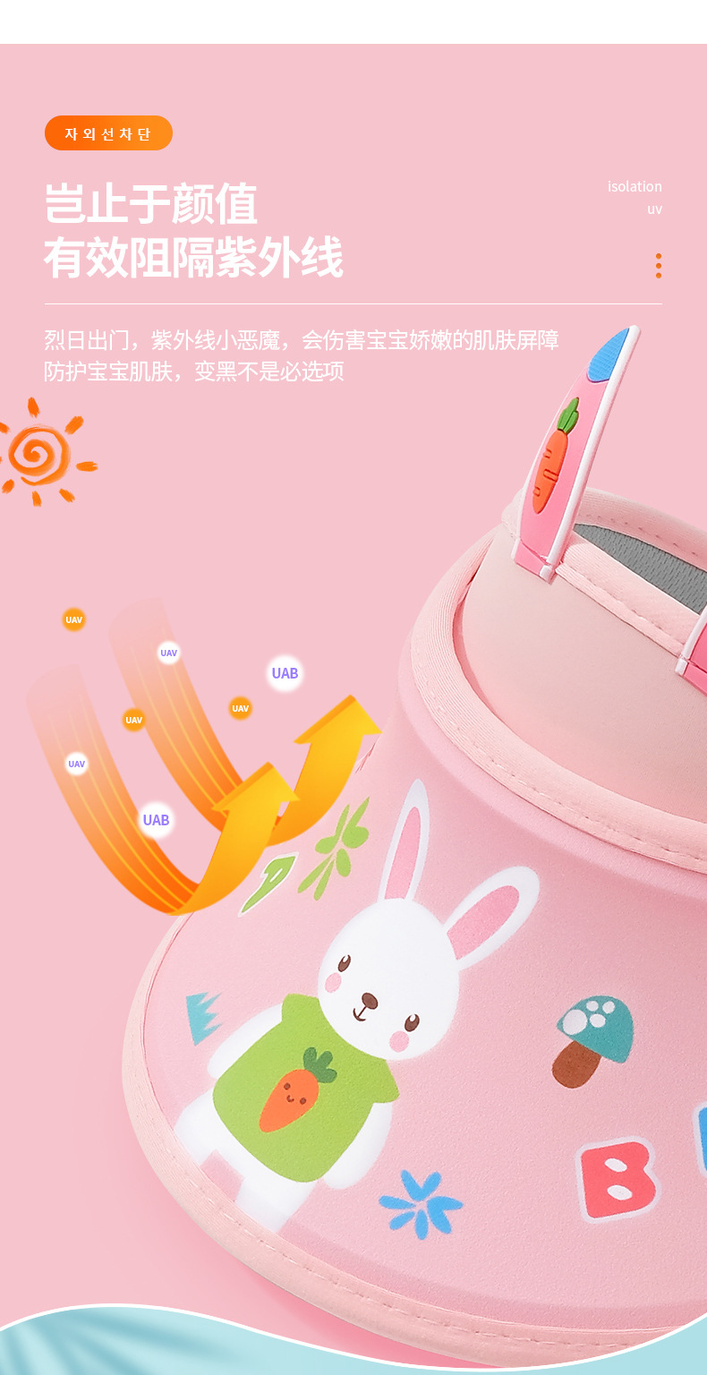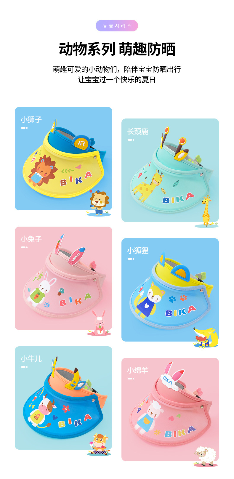 【360°灵活防晒 有效阻隔紫外线 清凉出行】夏季卡通大檐遮阳防晒儿童空顶帽可爱动物男女童太阳帽宝宝帽子