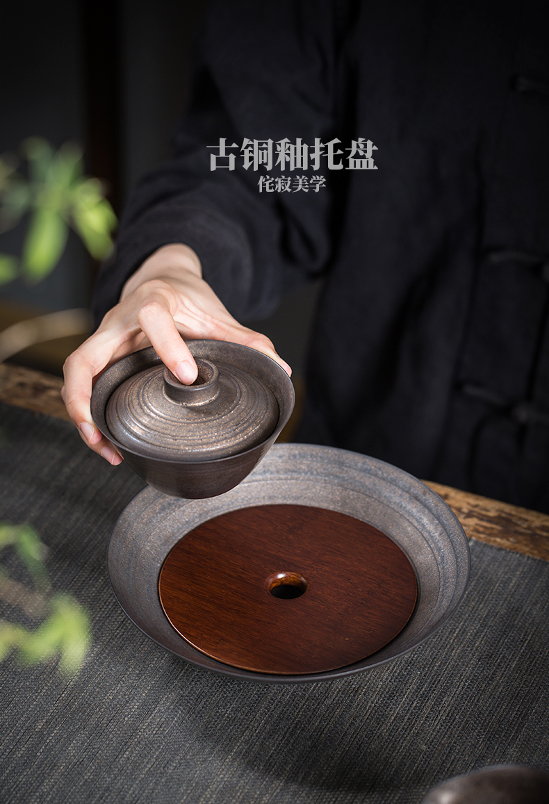 永利汇日式复古茶承壶承粗陶瓷干泡台托盘分茶盘垫茶点果盘功夫茶具茶盘