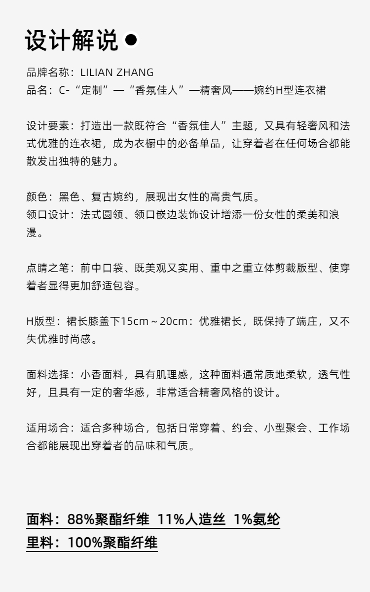 C-“定制”——“香氛佳人”——精奢风——婉约H型轻奢连衣裙 2401203
