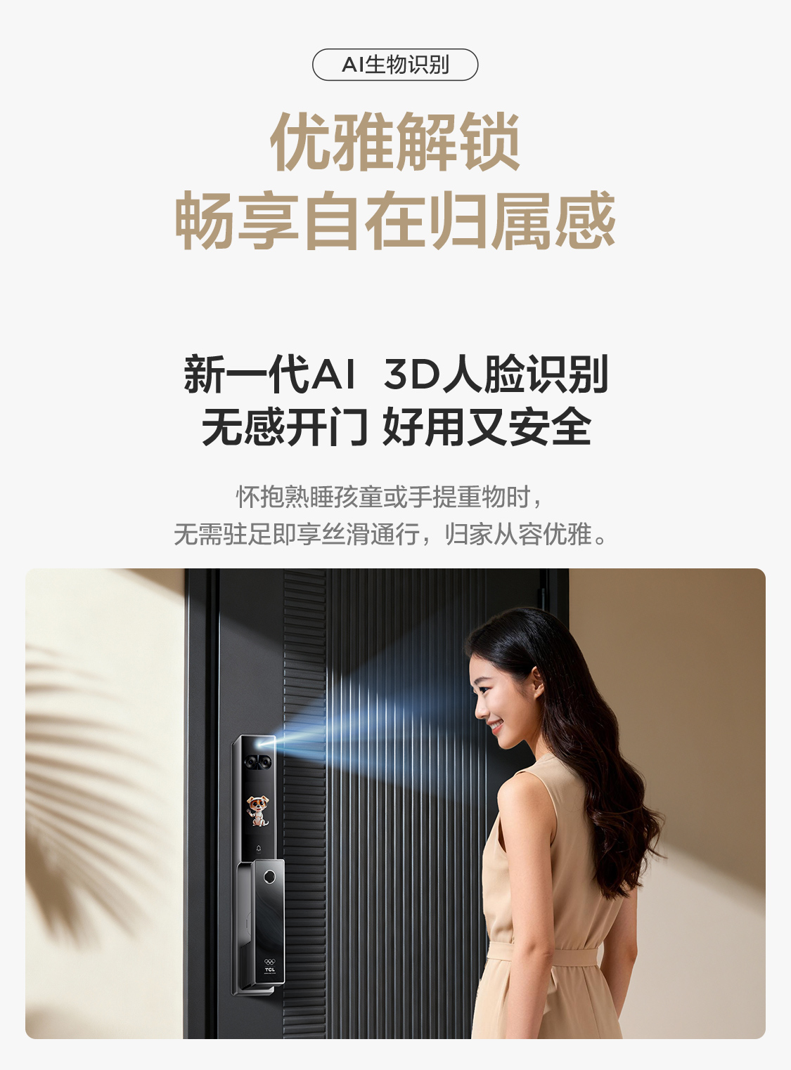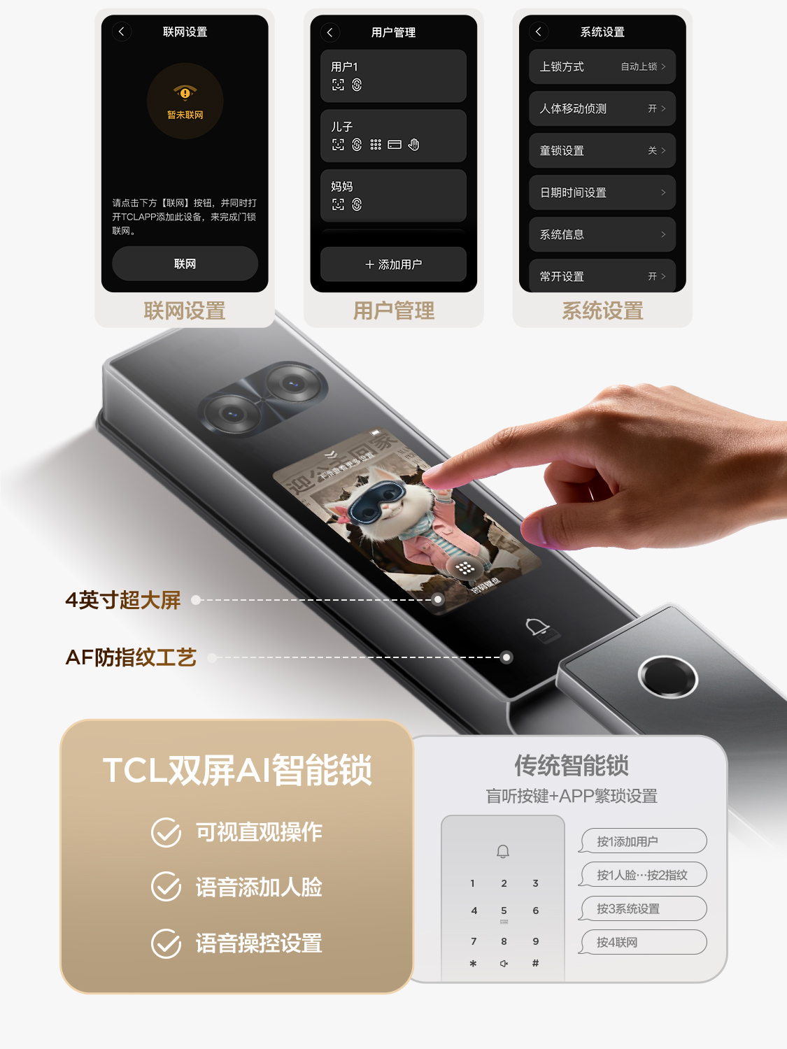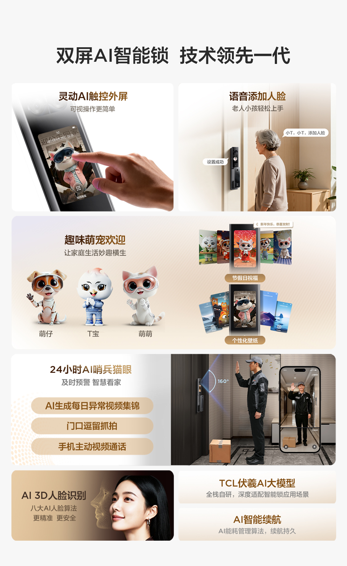 TCL智能门锁双屏AI智能锁萌宠互动语音录入人脸识别大屏猫眼K11 Pro