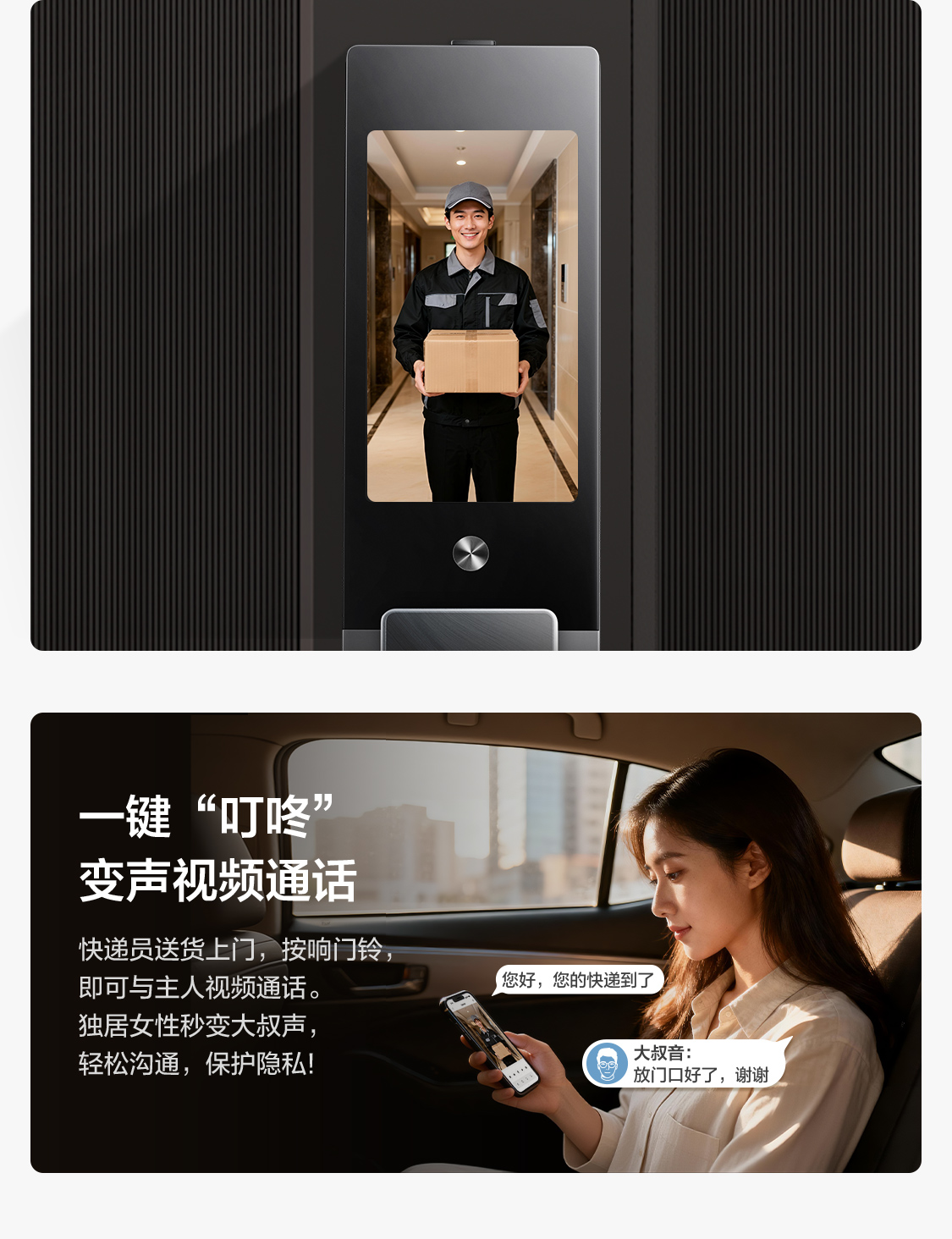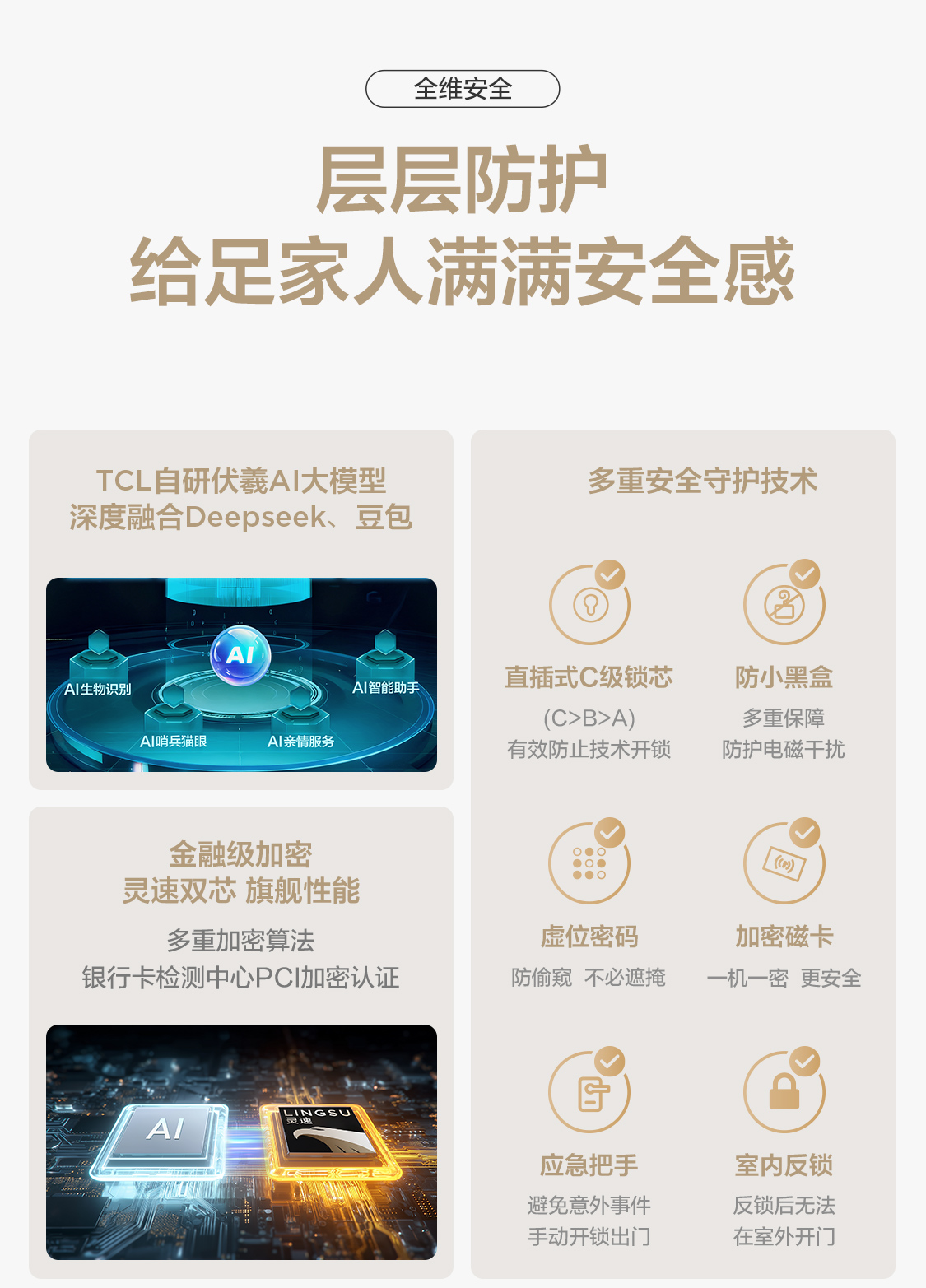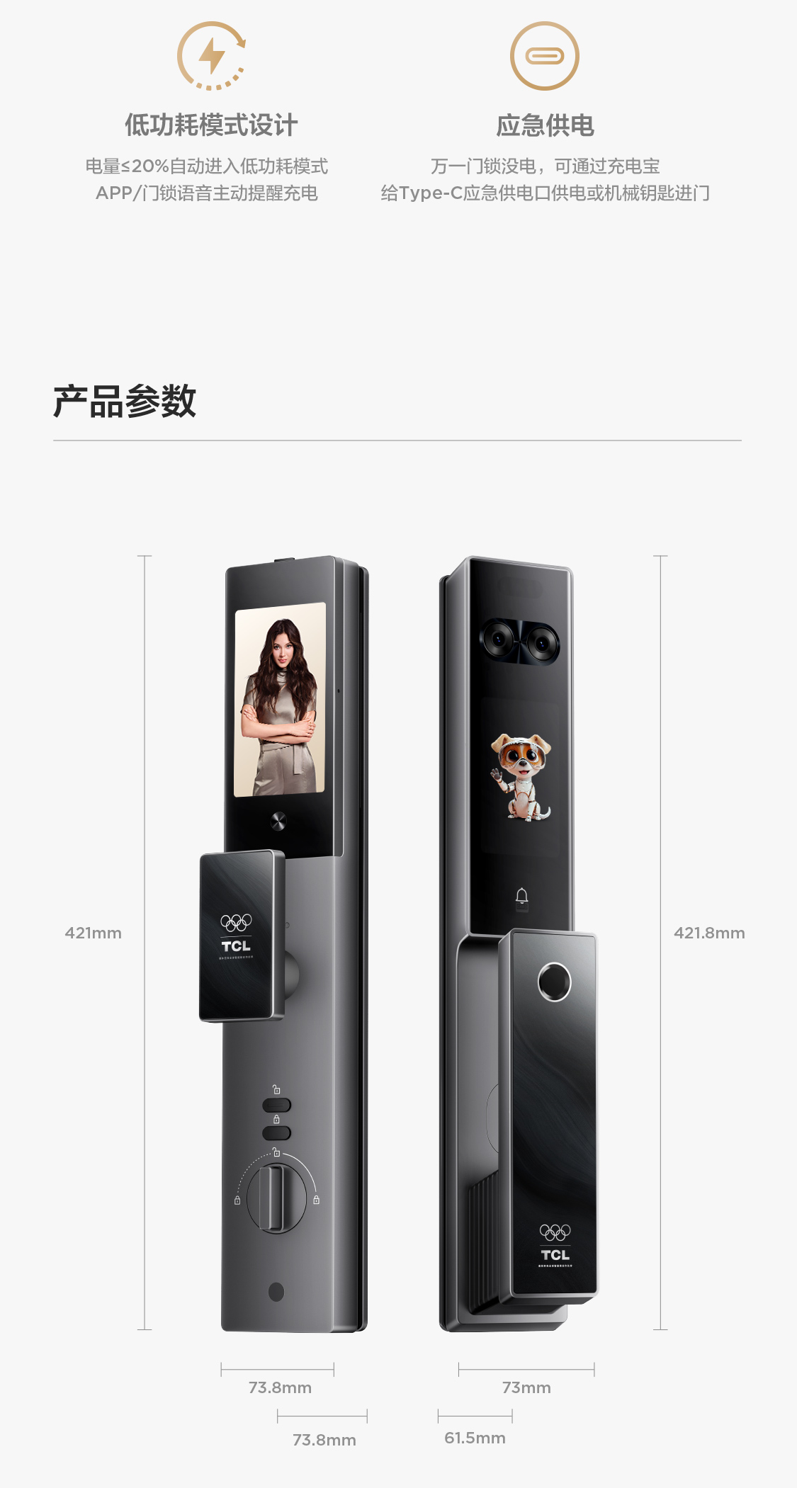 TCL智能门锁双屏AI智能锁萌宠互动语音录入人脸识别大屏猫眼K11 Pro