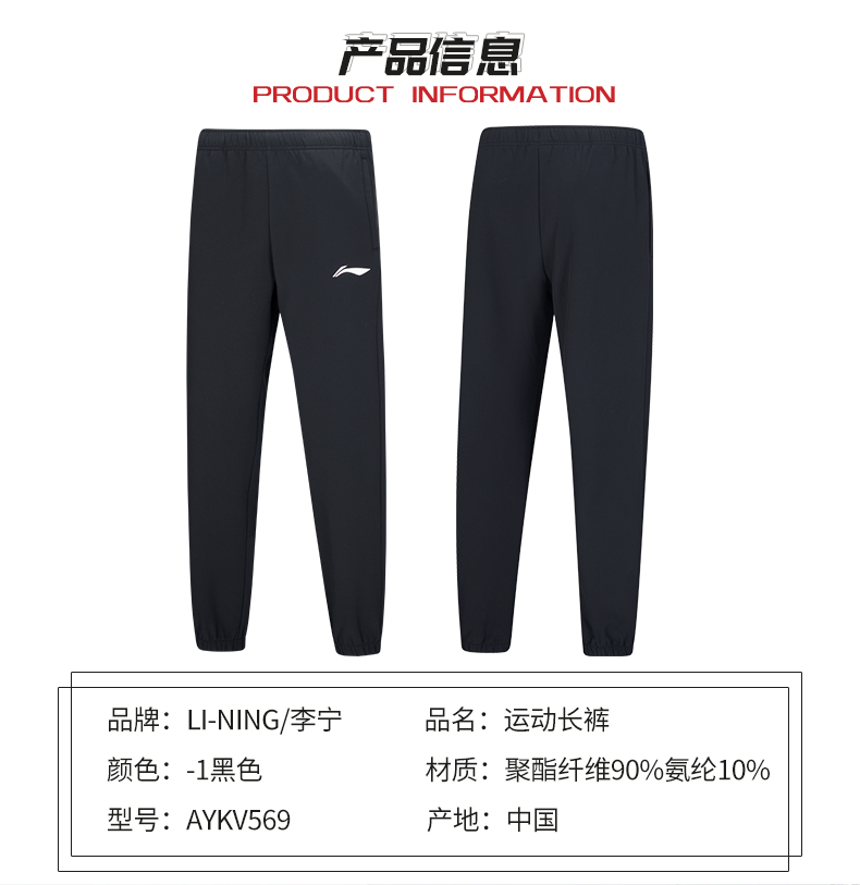 李宁羽毛球服男女款长裤AYKV569 AYKV575舒适高弹训练运动裤