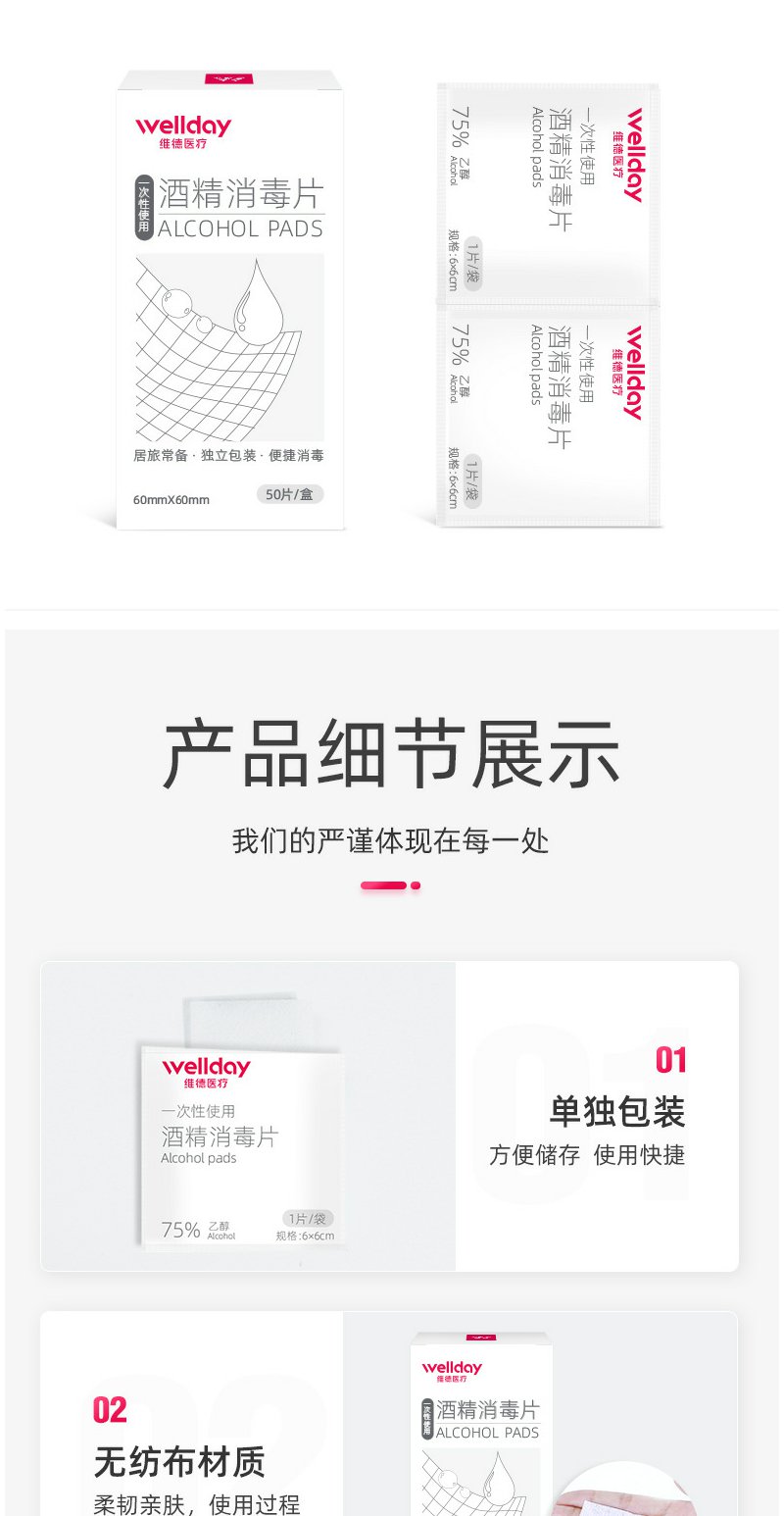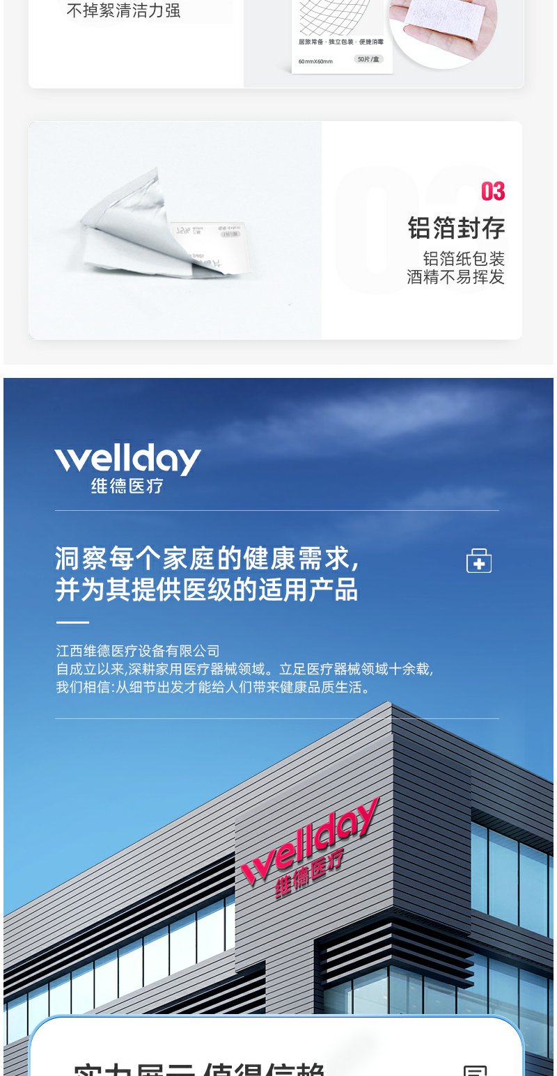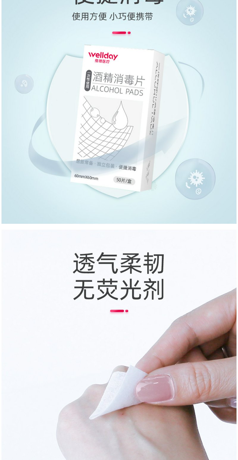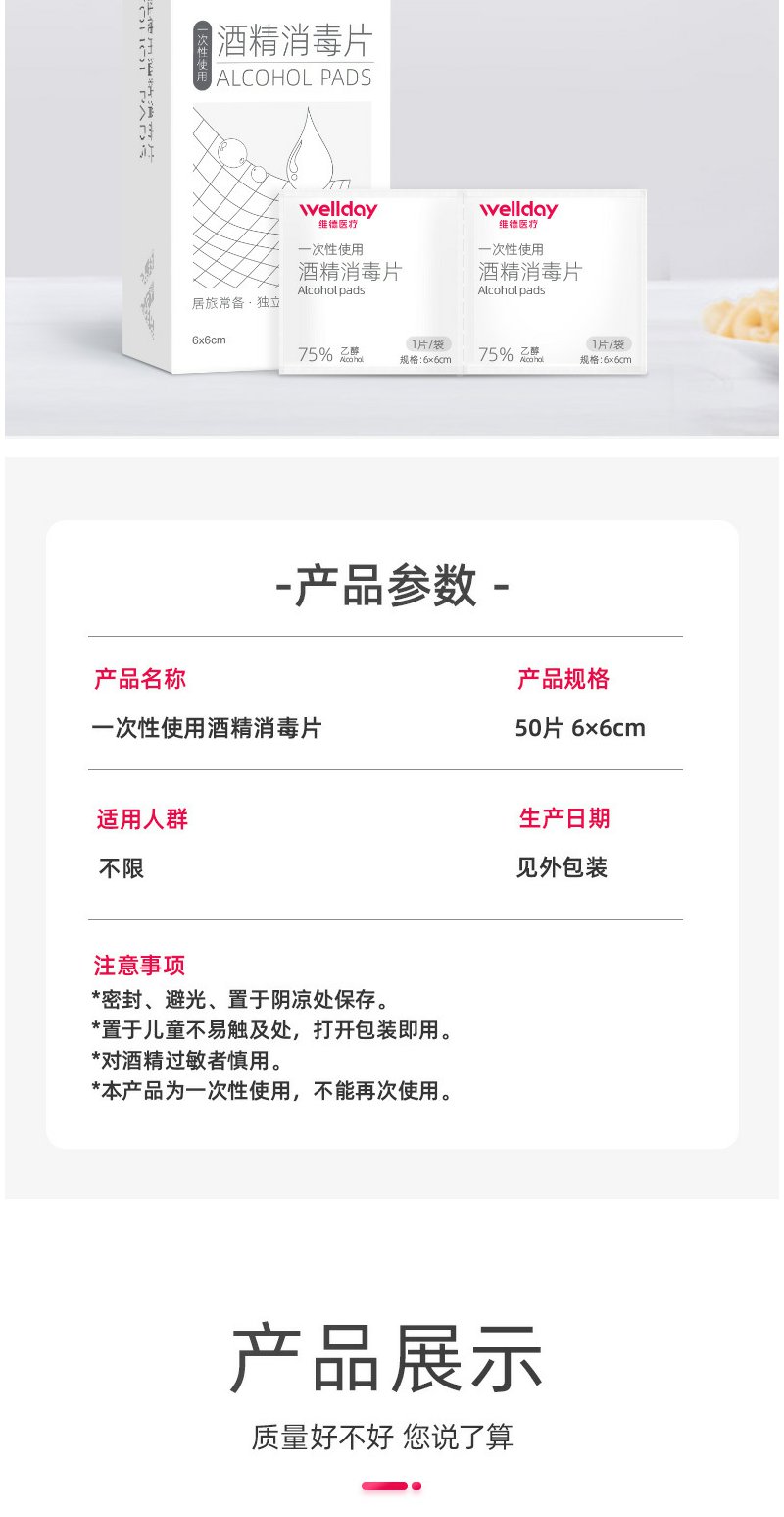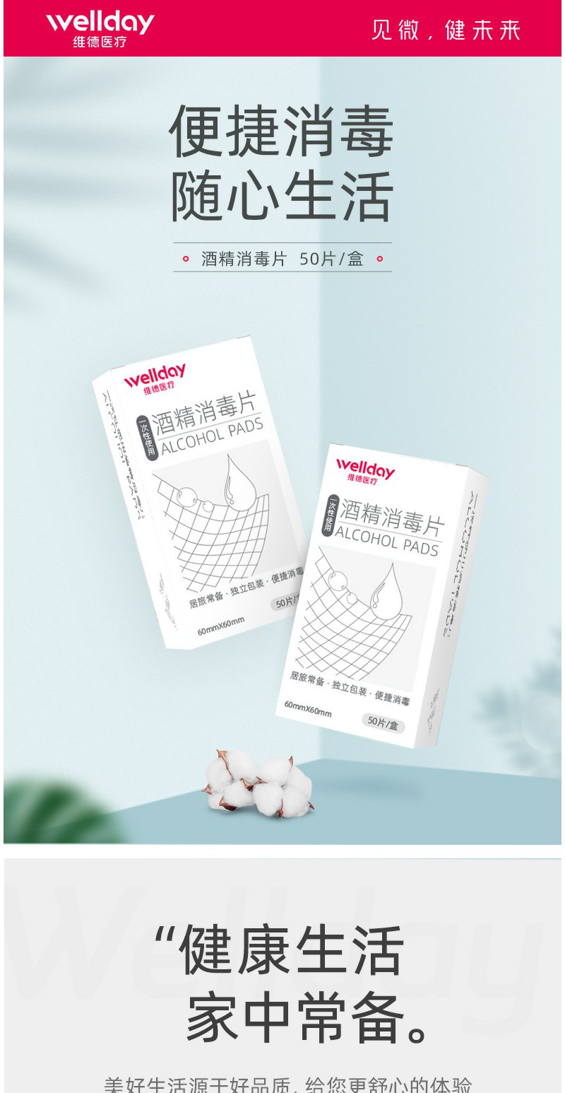 【维德医疗】医用酒精棉片50片/盒【6*6cm】