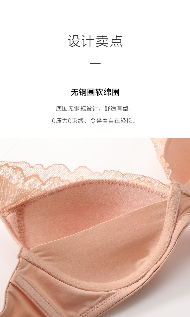 金三塔100%桑蚕丝里料舒适美肤薄款长三角杯又纯又欲无钢圈文胸 NZFBC314
