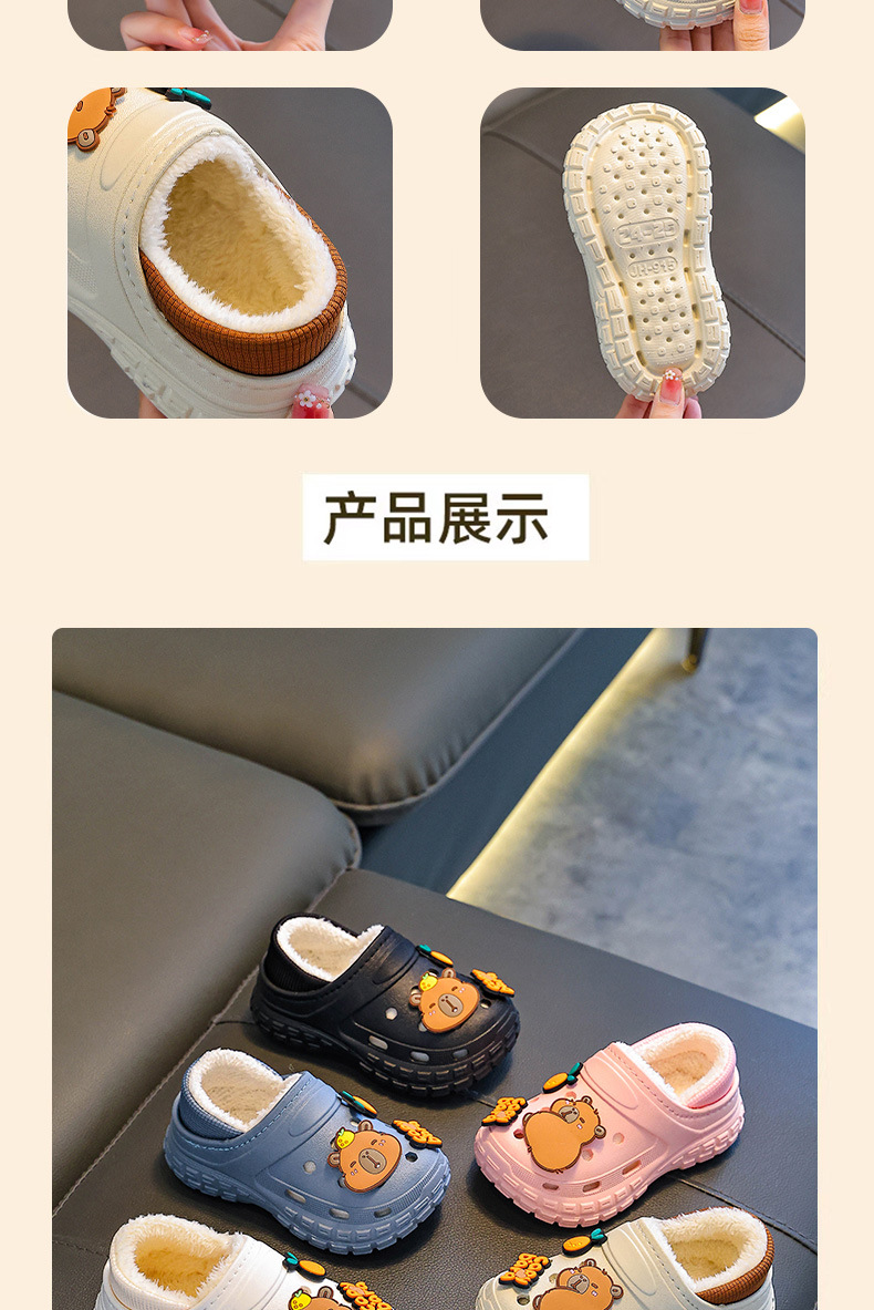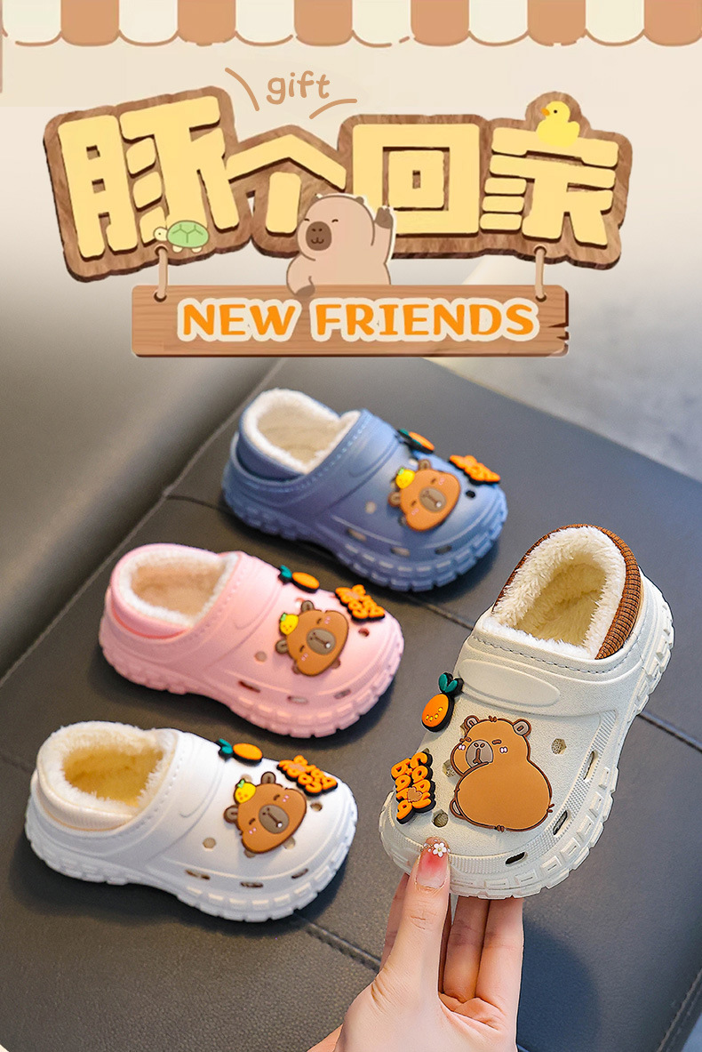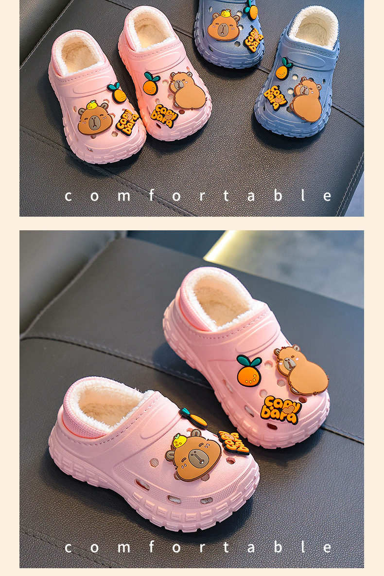 【内垫可抽出!方便清洗晾晒】不怕寒冷,细腻柔软,防滑卡皮巴拉儿童棉拖鞋冬男女童保暖加绒防水亲子中大童宝宝包跟棉鞋。rb