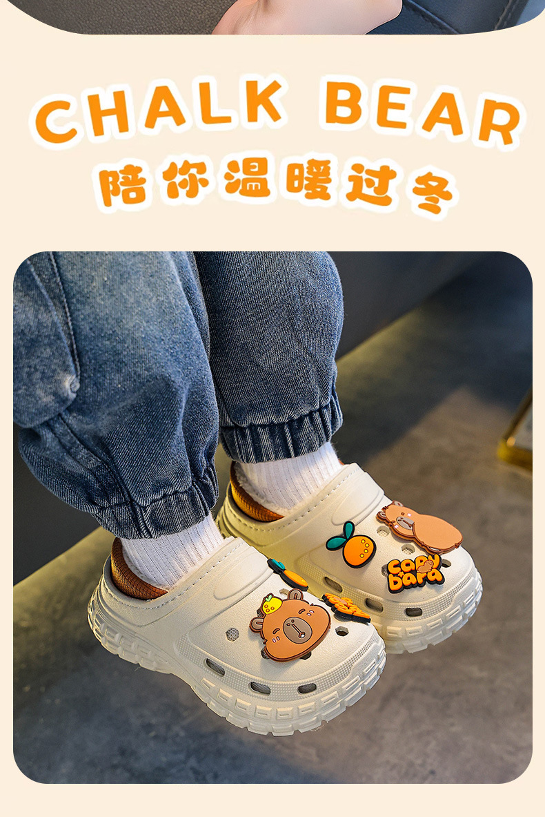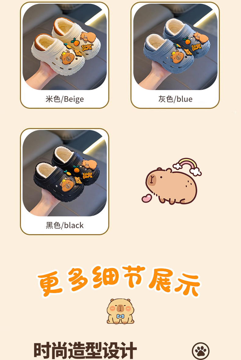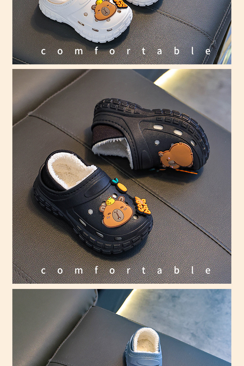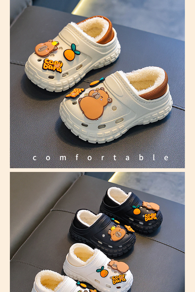 【内垫可抽出!方便清洗晾晒】不怕寒冷,细腻柔软,防滑卡皮巴拉儿童棉拖鞋冬男女童保暖加绒防水亲子中大童宝宝包跟棉鞋。rb