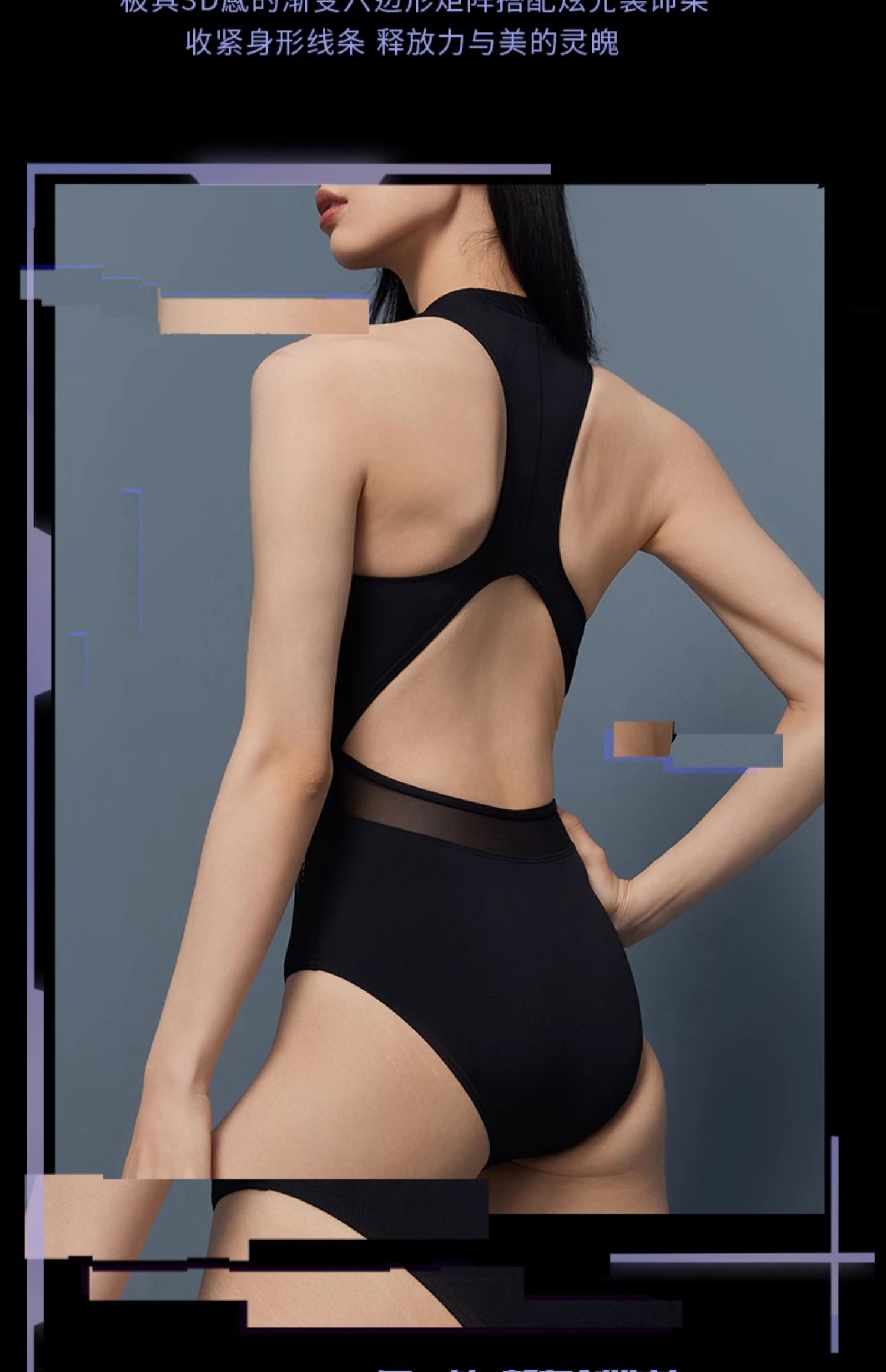 Speedo/速比涛 全新电气矩阵 黑标复刻鲨鱼皮露背泳衣女