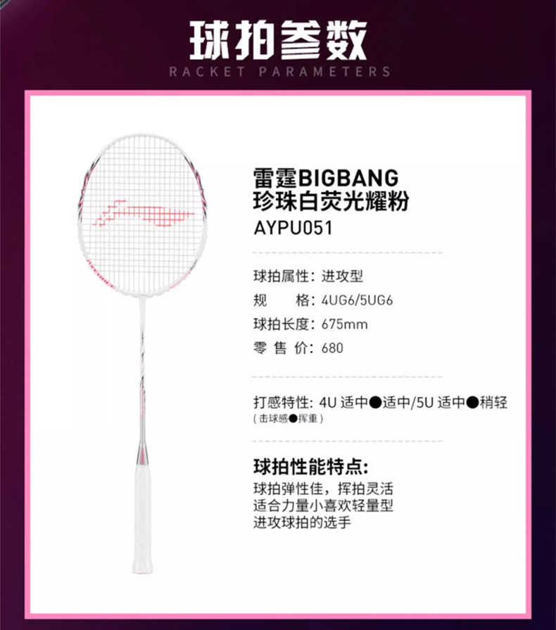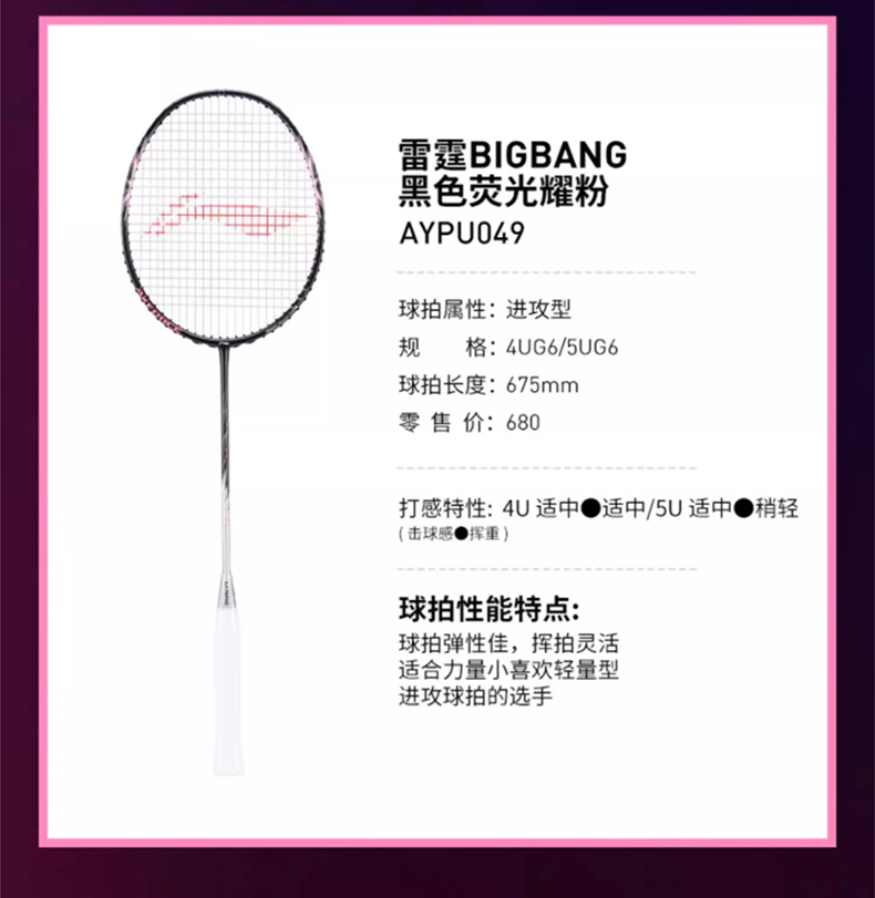 李宁羽毛球拍雷霆BIGBANG全碳素羽毛球拍 雷霆大爆炸NEW羽毛球拍进阶