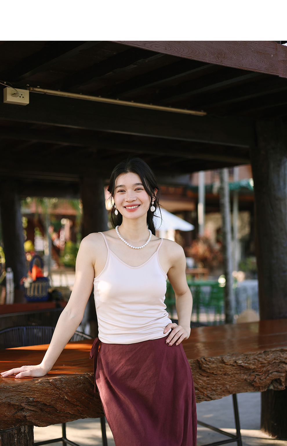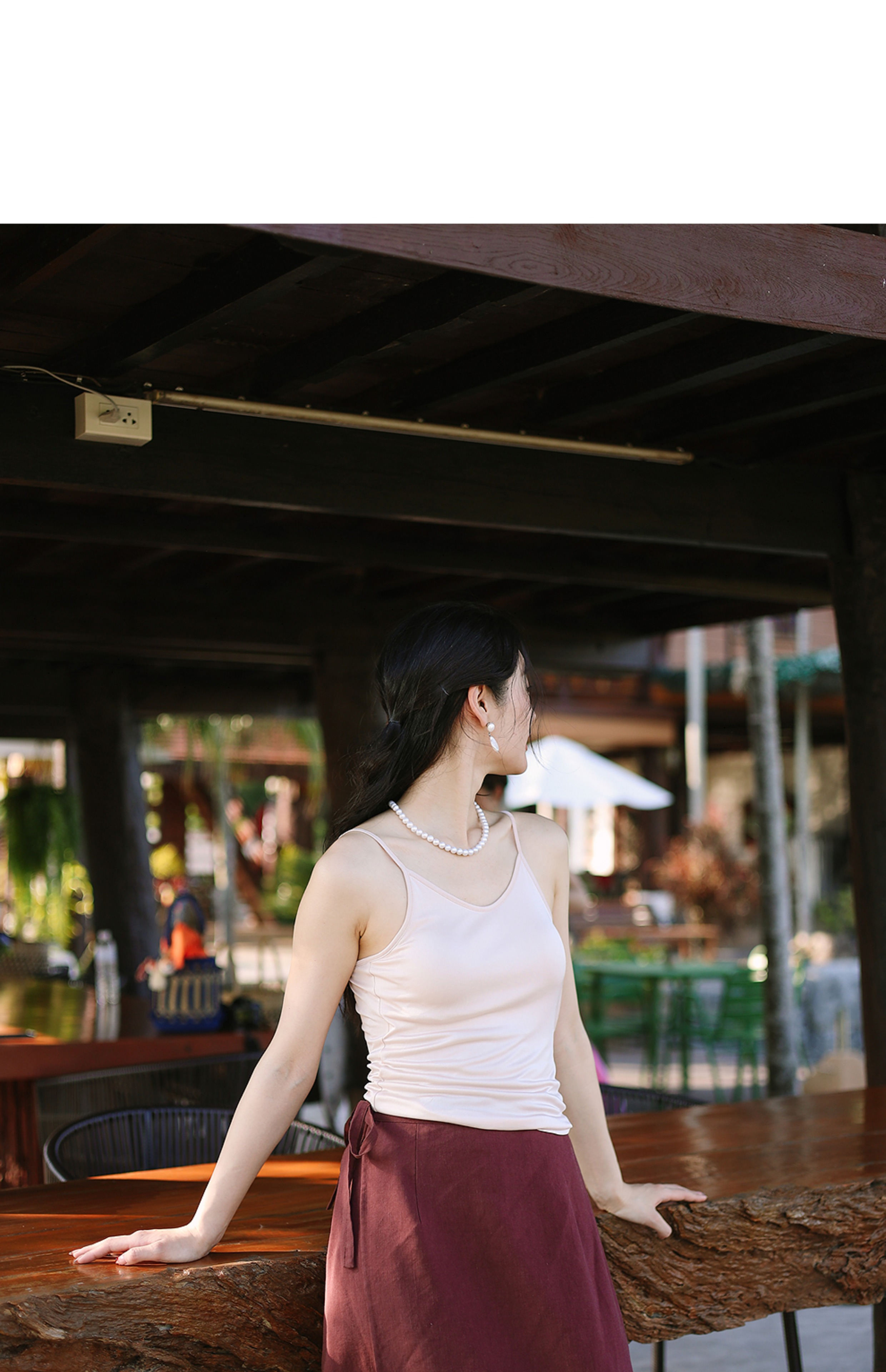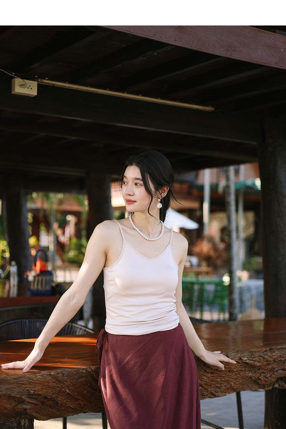 绽放121朵/桑蚕丝带胸垫可调节显白弧形小v领百搭简约肩带吊带
