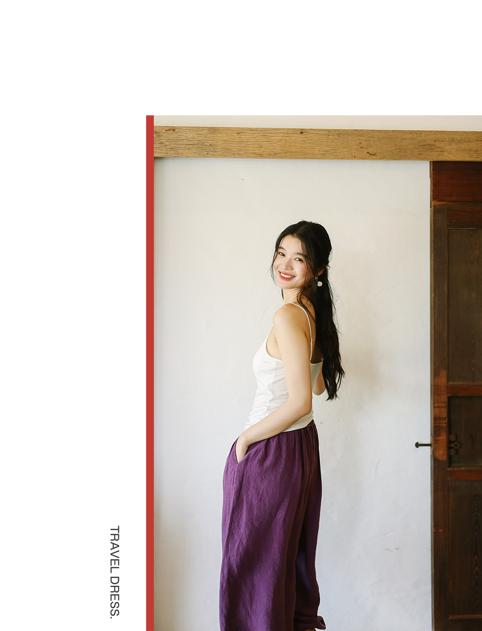 以天然亚麻为载体,融合热烈色彩与自在剪裁为身在城市、心怀远方的女性提供兼具美学与舒适的旅行着装