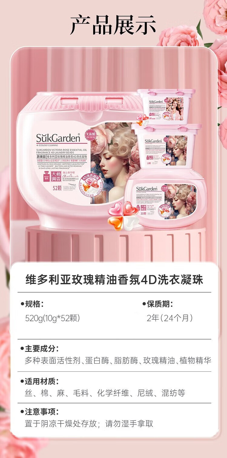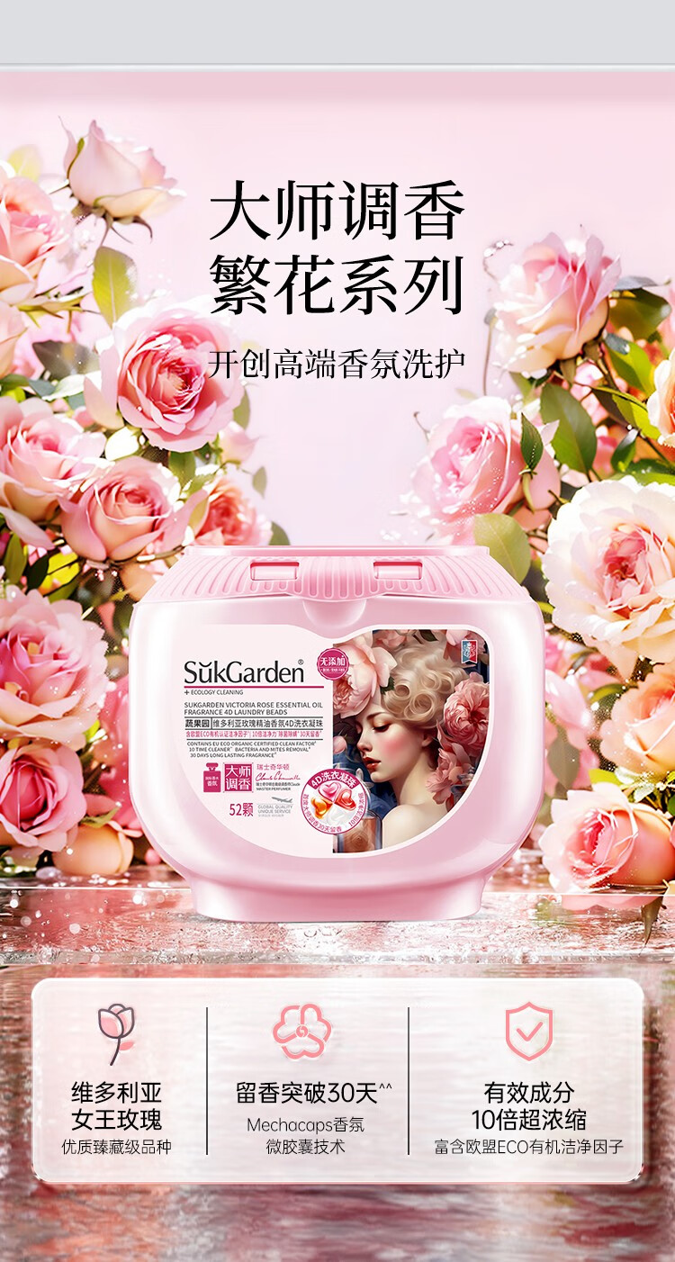 SukGarden蔬果园 维多利亚玫瑰精油香氛4D洗衣凝珠-10g*52颗