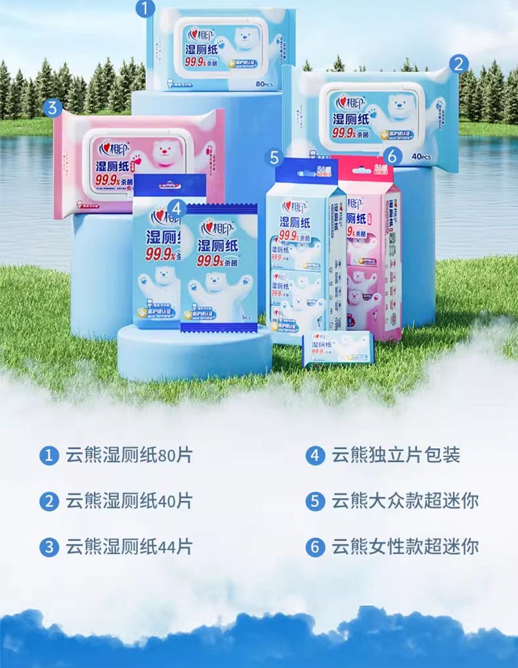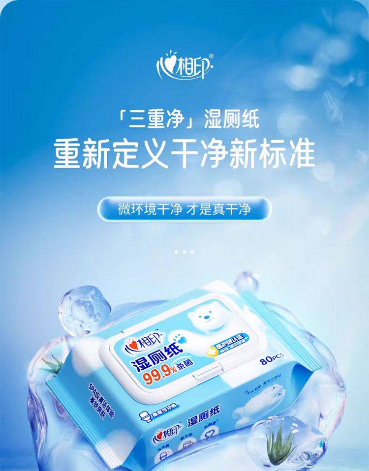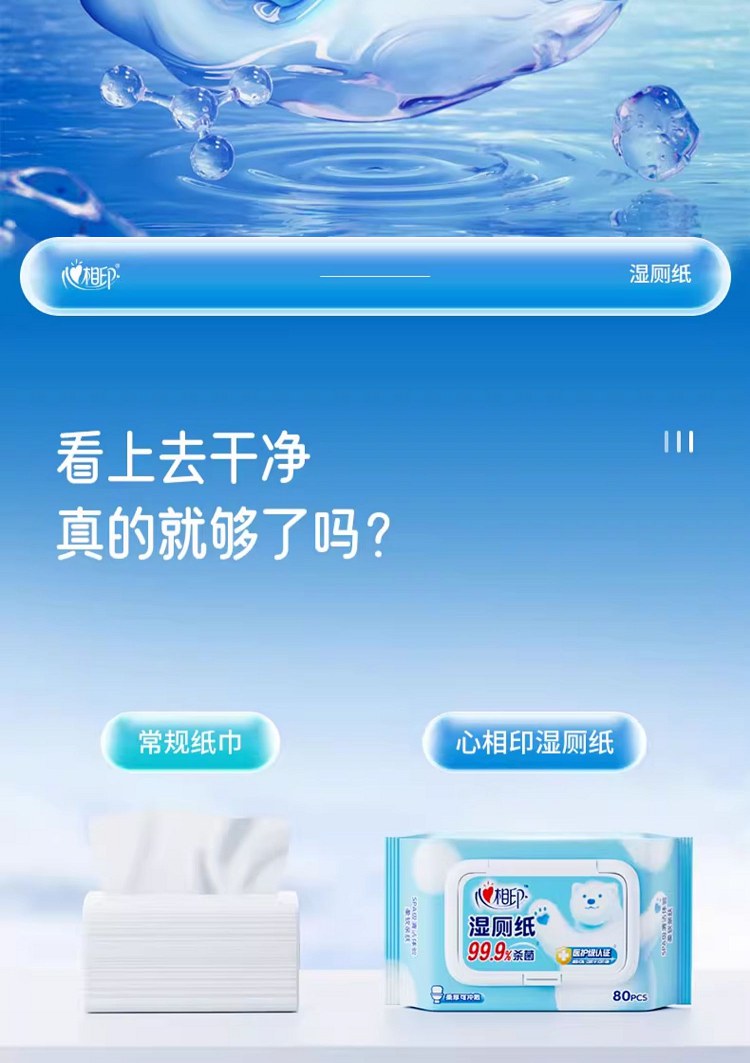 XCY080+P2(箱装)心相印湿厕纸系列80片装湿巾5包组合装 AJA00508 80片×5包