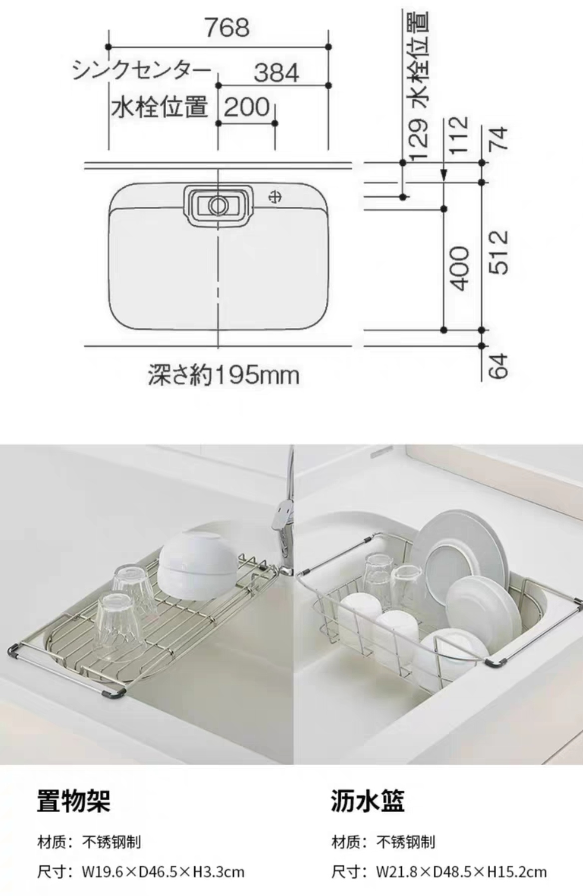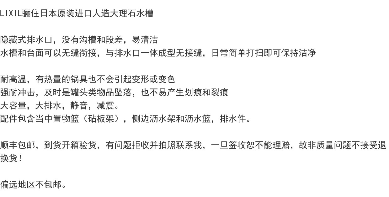 LIXIL骊住日本原装进口768mm白色人造大理石水槽坚固耐用厨房
