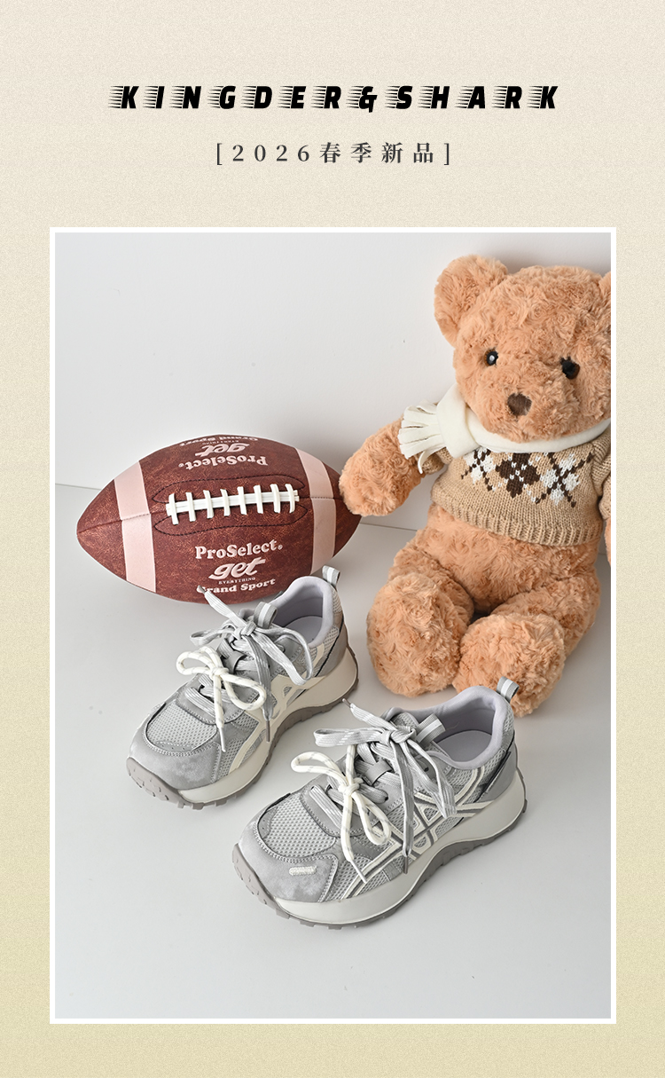 经典鲨2026年春专柜新品网面透气舒适系带平底跑步休闲鞋女KW219-617021