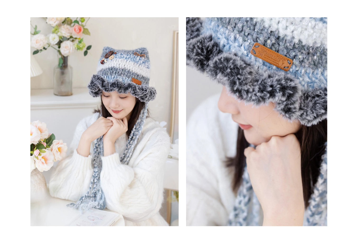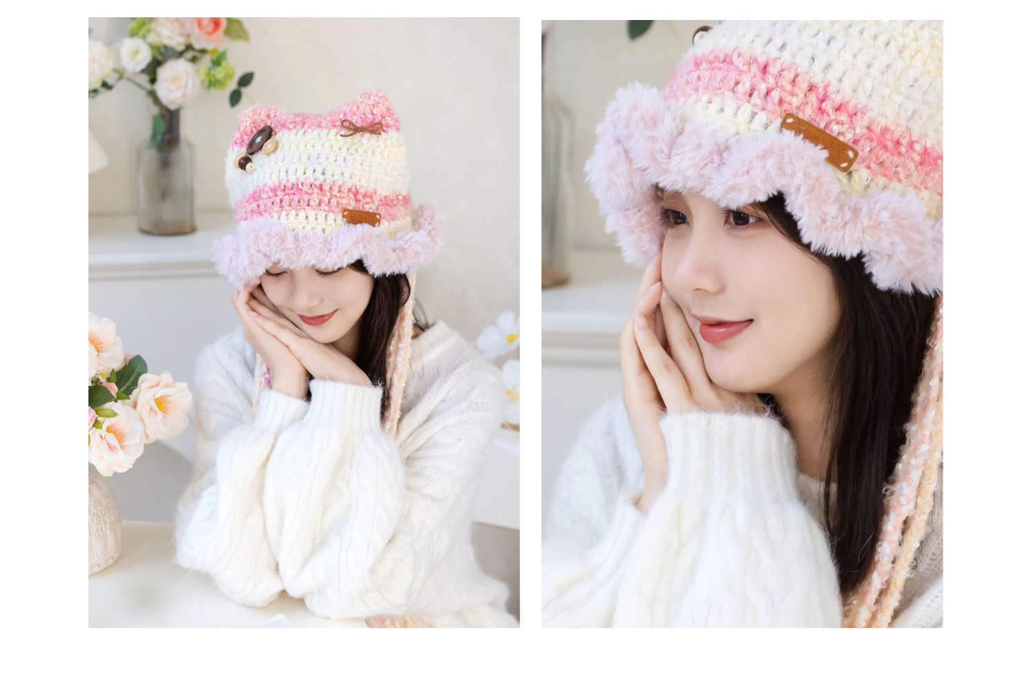 苏苏姐家亲子猫耳帽手工diy编织印象花海毛线团自制亲子材料包预