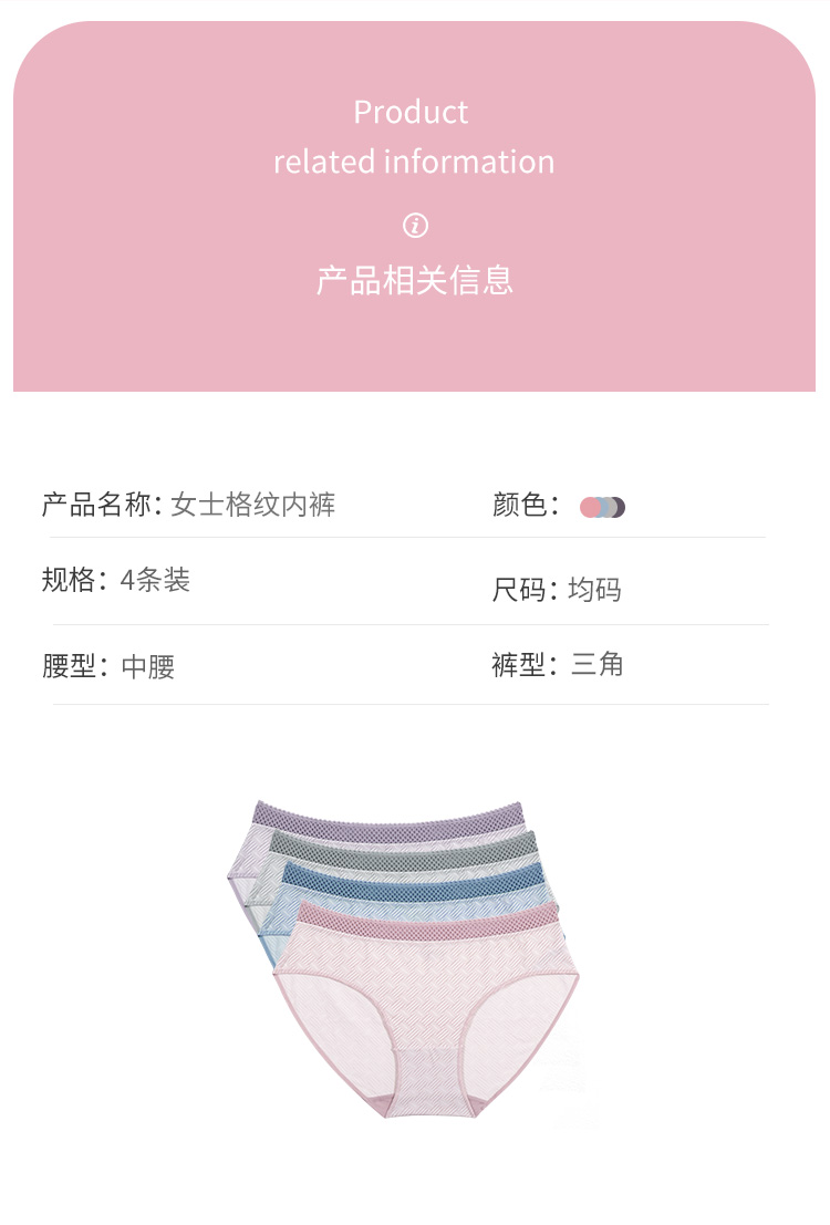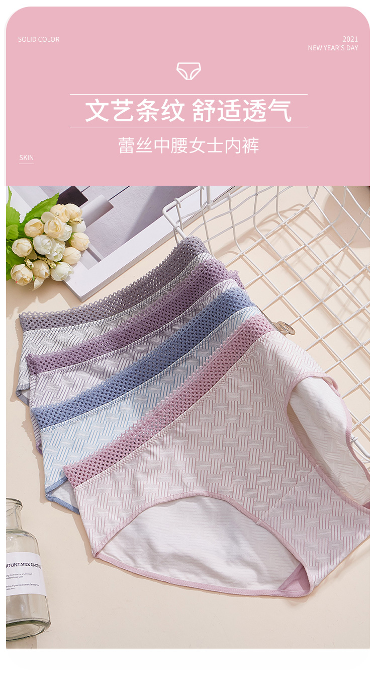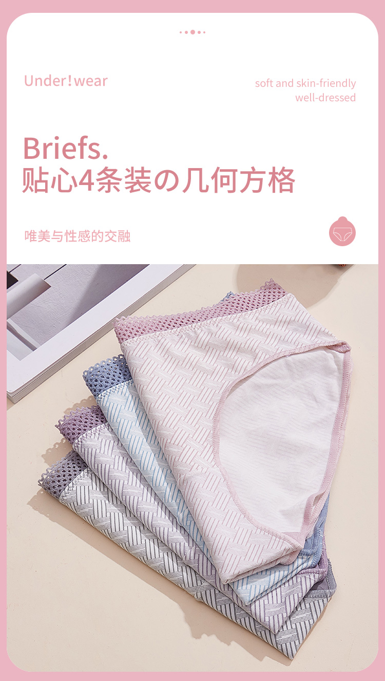 雅黛丽内裤女舒适透气蕾丝花边女士内裤棉质中腰三角裤四条装