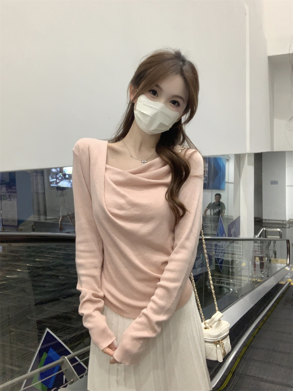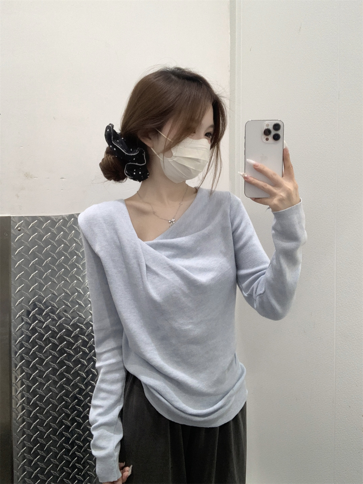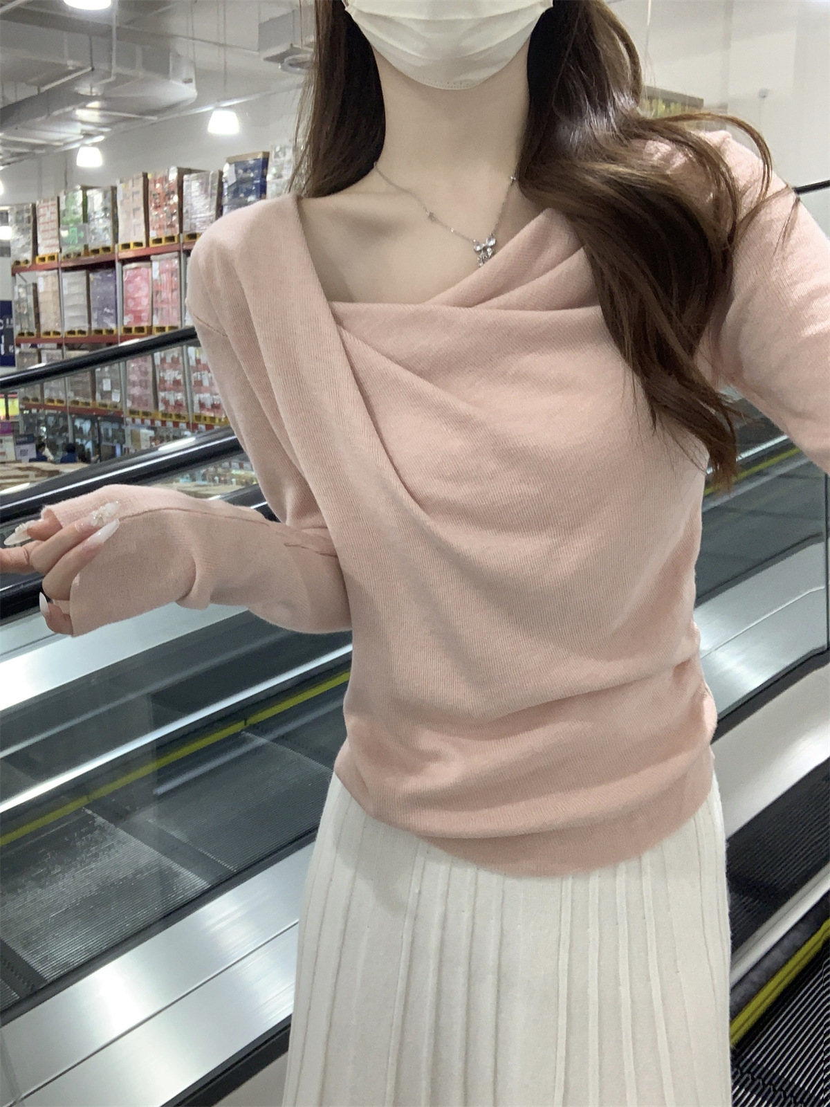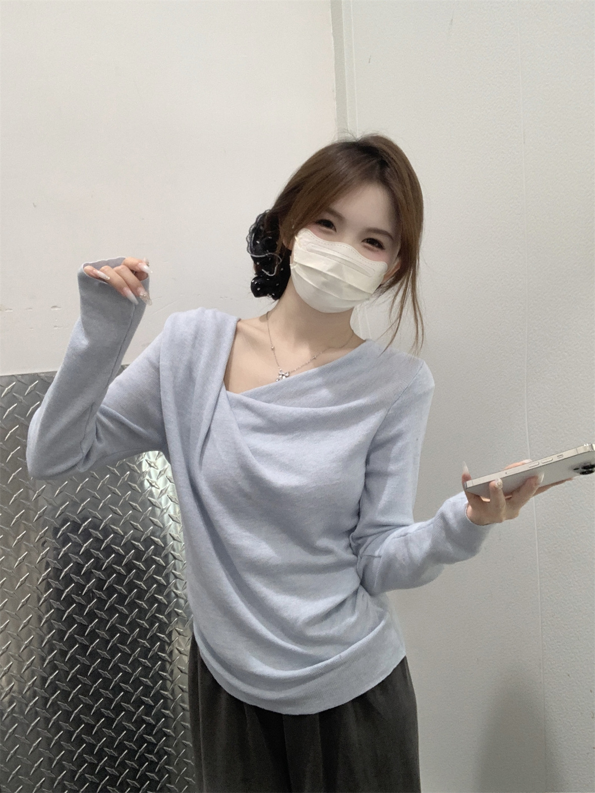 【小众设计感❗️荡领收腰针织上衣】荡领设计自然垂坠,露出锁骨线条,慵懒又性感,下摆自然收褶,贴合腰线,巧妙修饰腰腹赘肉,打造S型曲线,春季温柔风修身内搭打底衫气质上衣