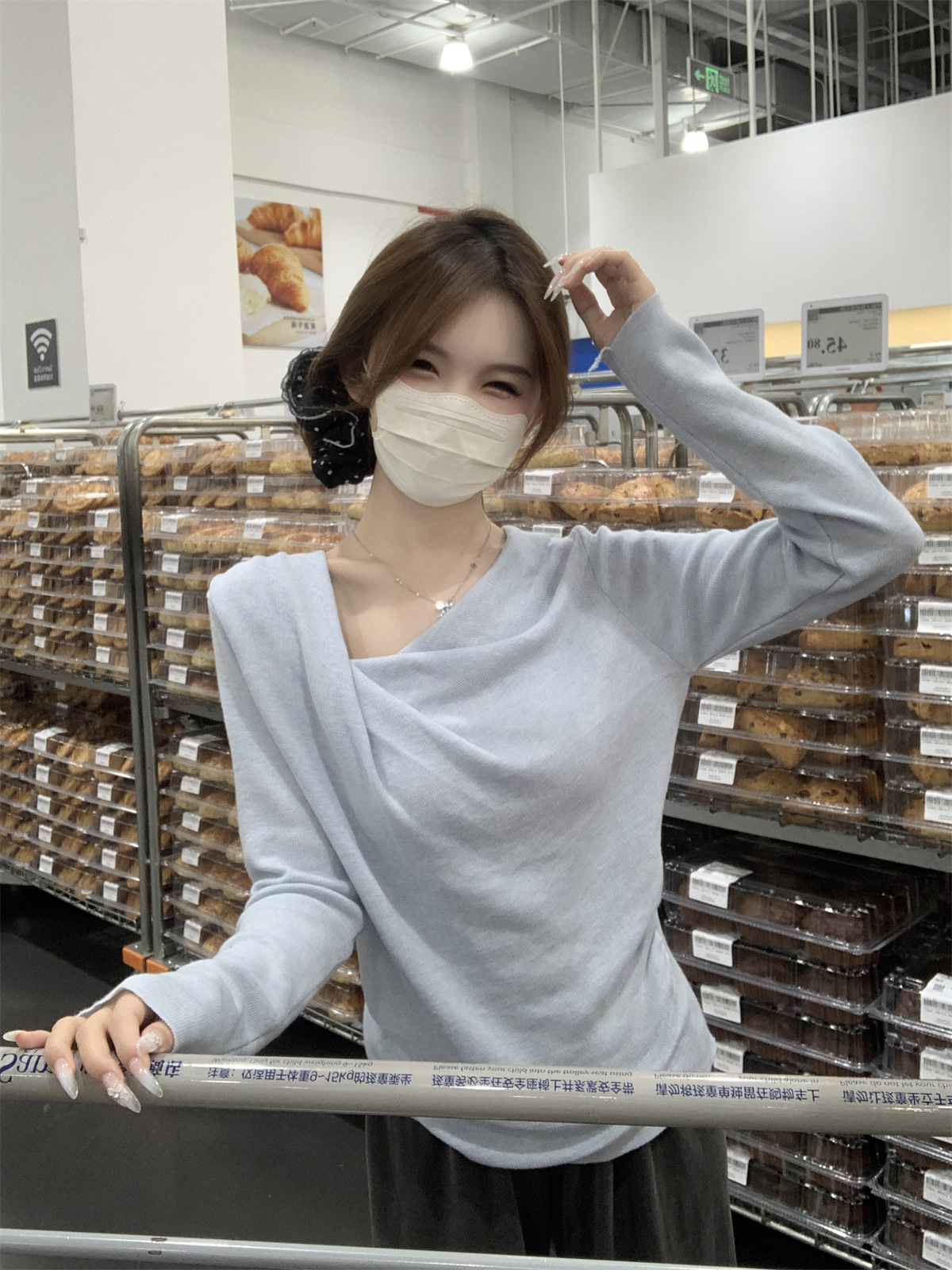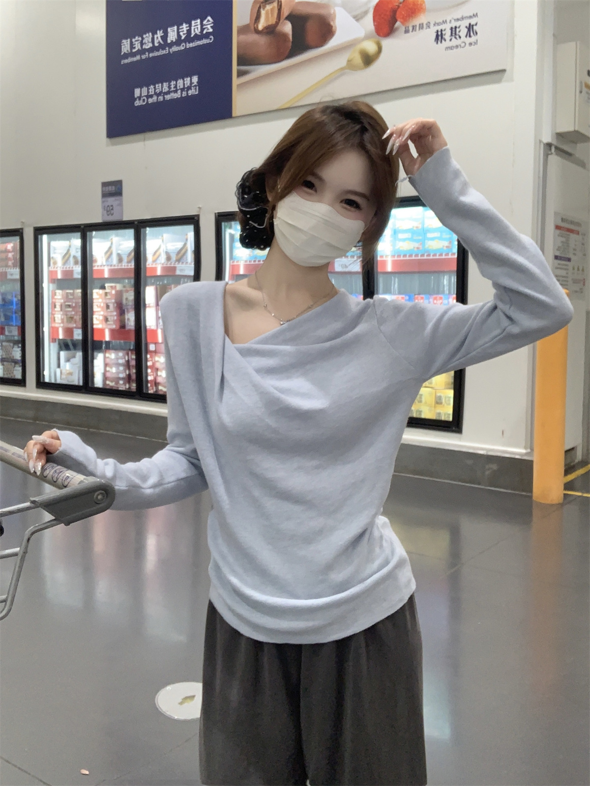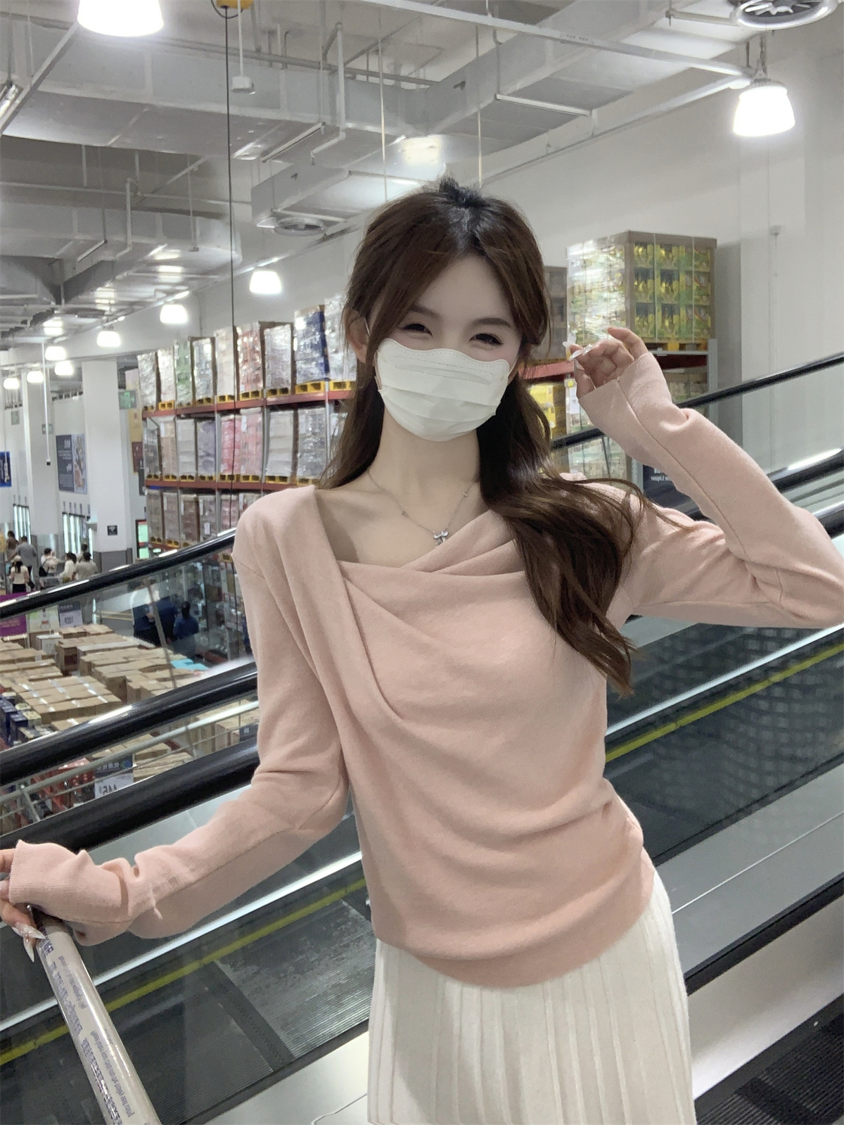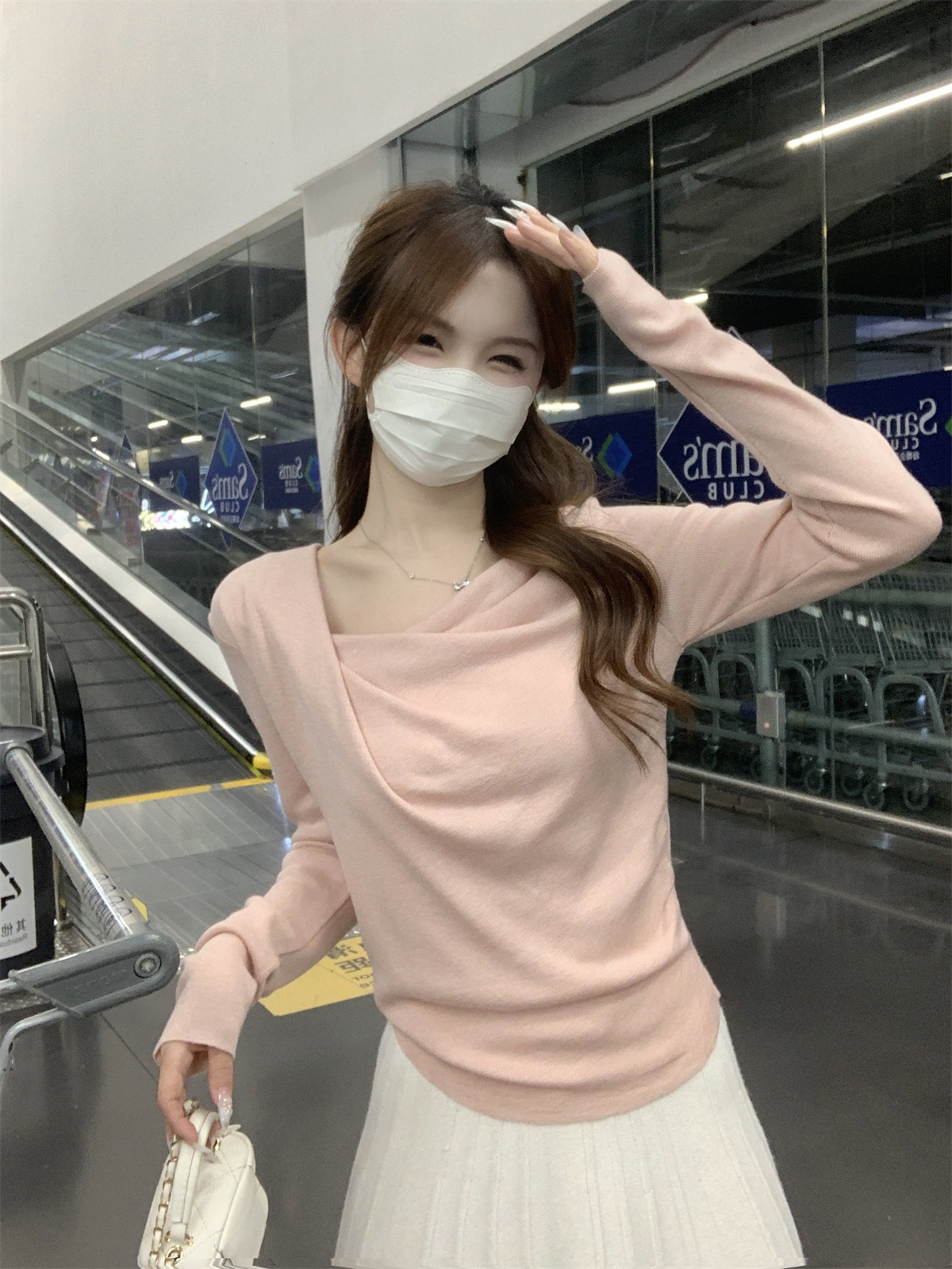 【小众设计感❗️荡领收腰针织上衣】荡领设计自然垂坠,露出锁骨线条,慵懒又性感,下摆自然收褶,贴合腰线,巧妙修饰腰腹赘肉,打造S型曲线,春季温柔风修身内搭打底衫气质上衣