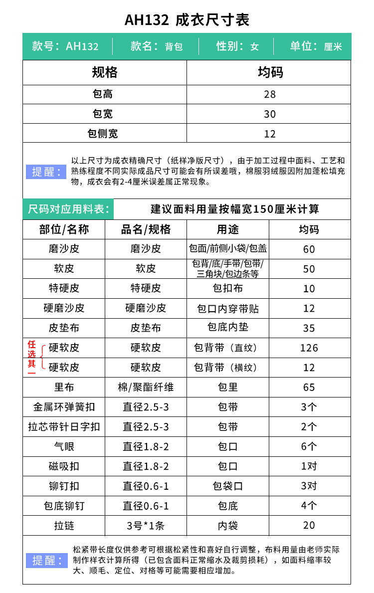 裁缝学苑AH132复古双肩包纸样女装大容量通勤背包斜挎包样板图纸