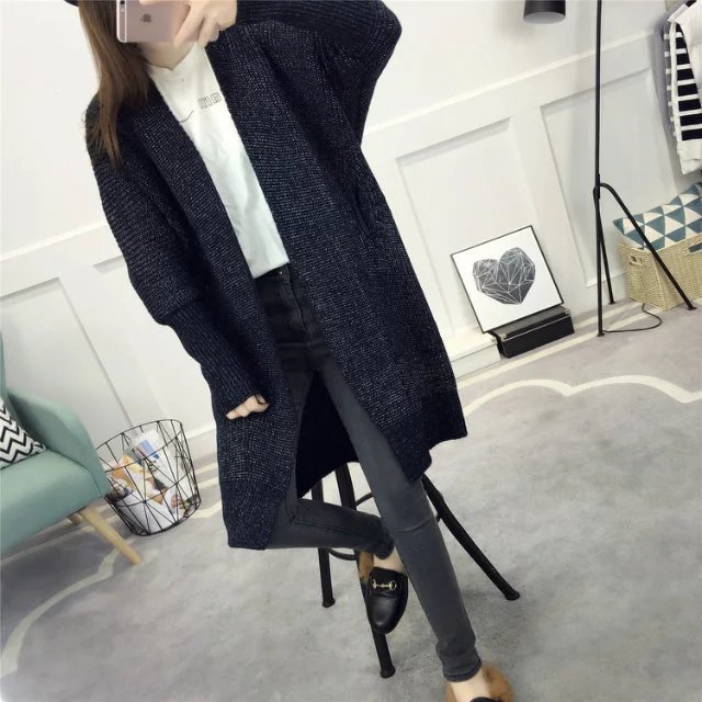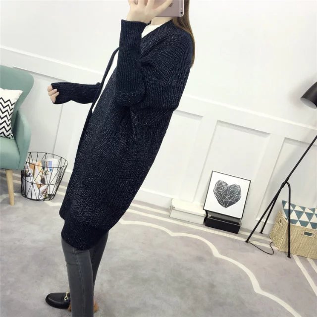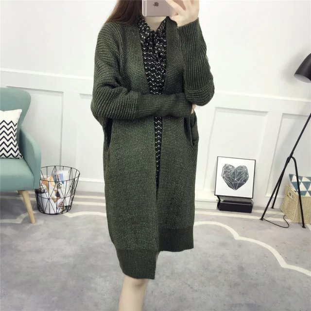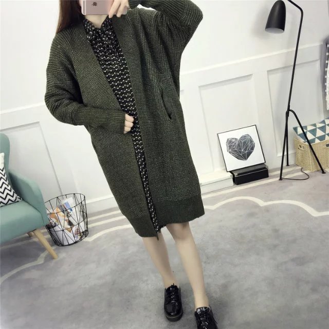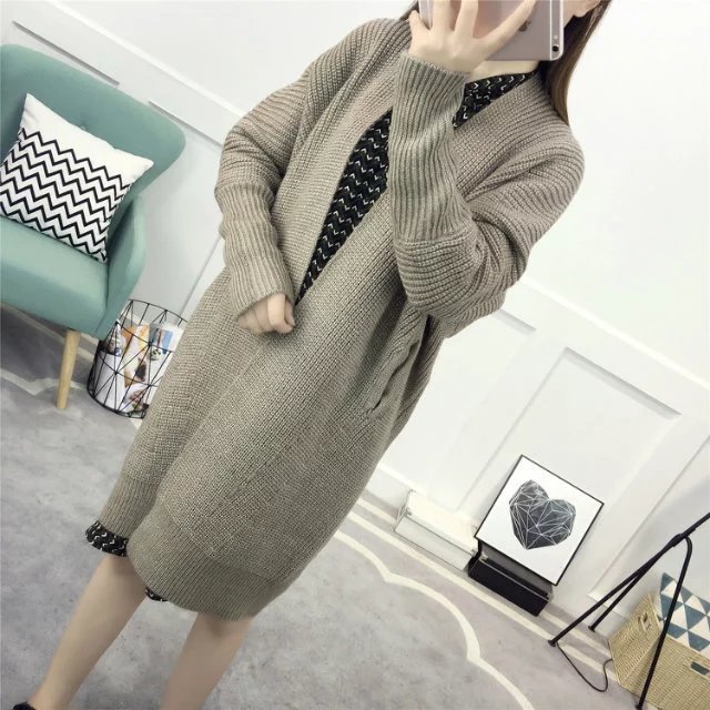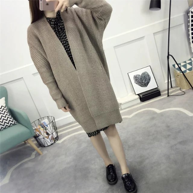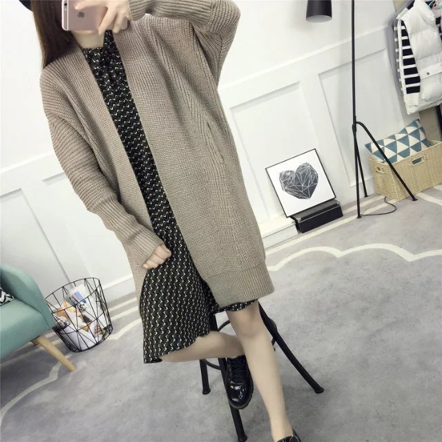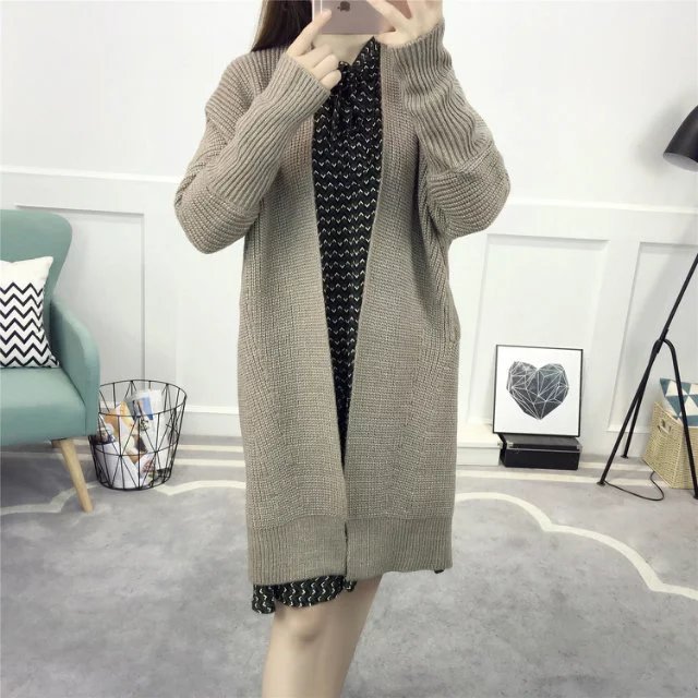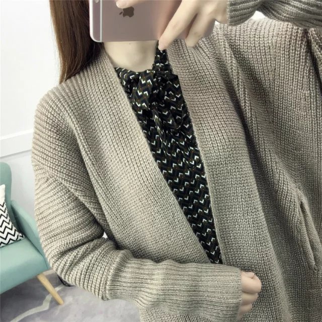 【服饰鞋包】春装新款女装韩版纯色百搭毛衣外套女中长款宽松针织衫开衫潮