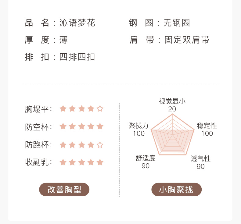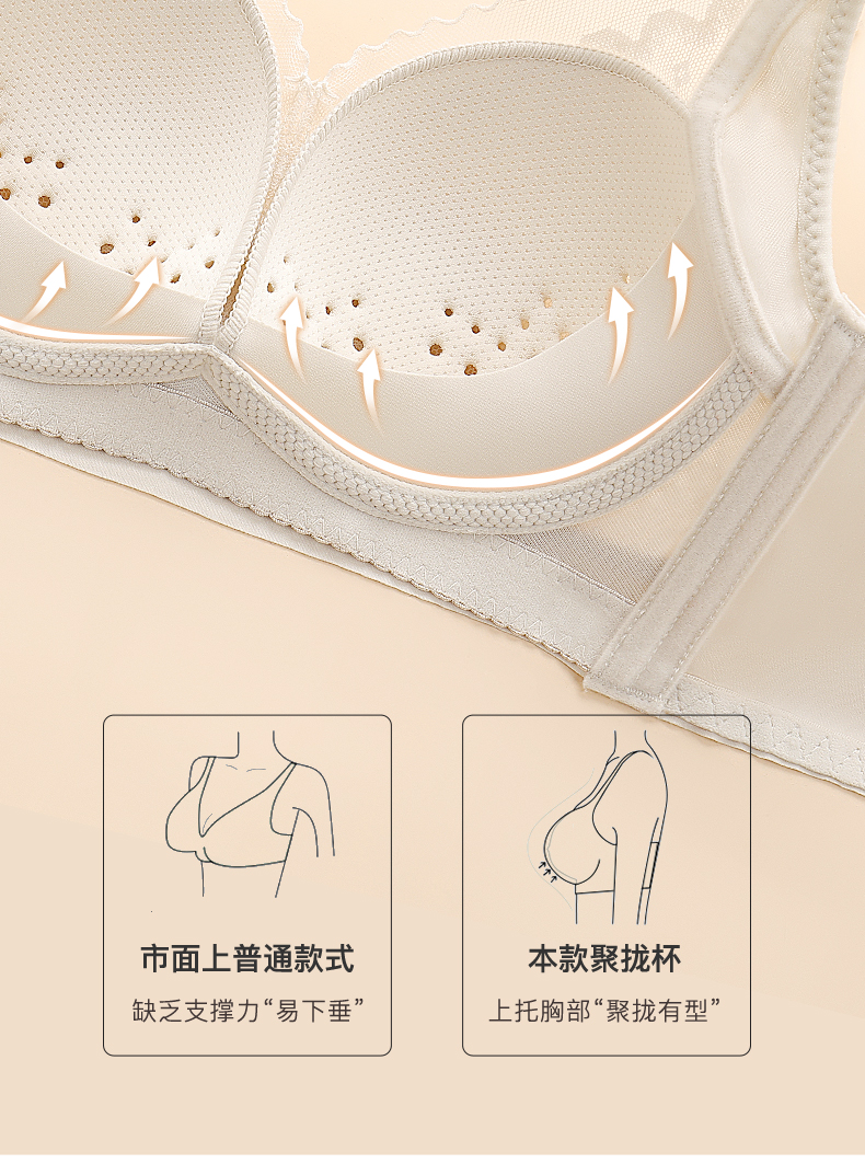 梦芭蒂薄大胸显小内衣女透气上托收副乳文胸聚拢舒适胸罩沁语梦花
