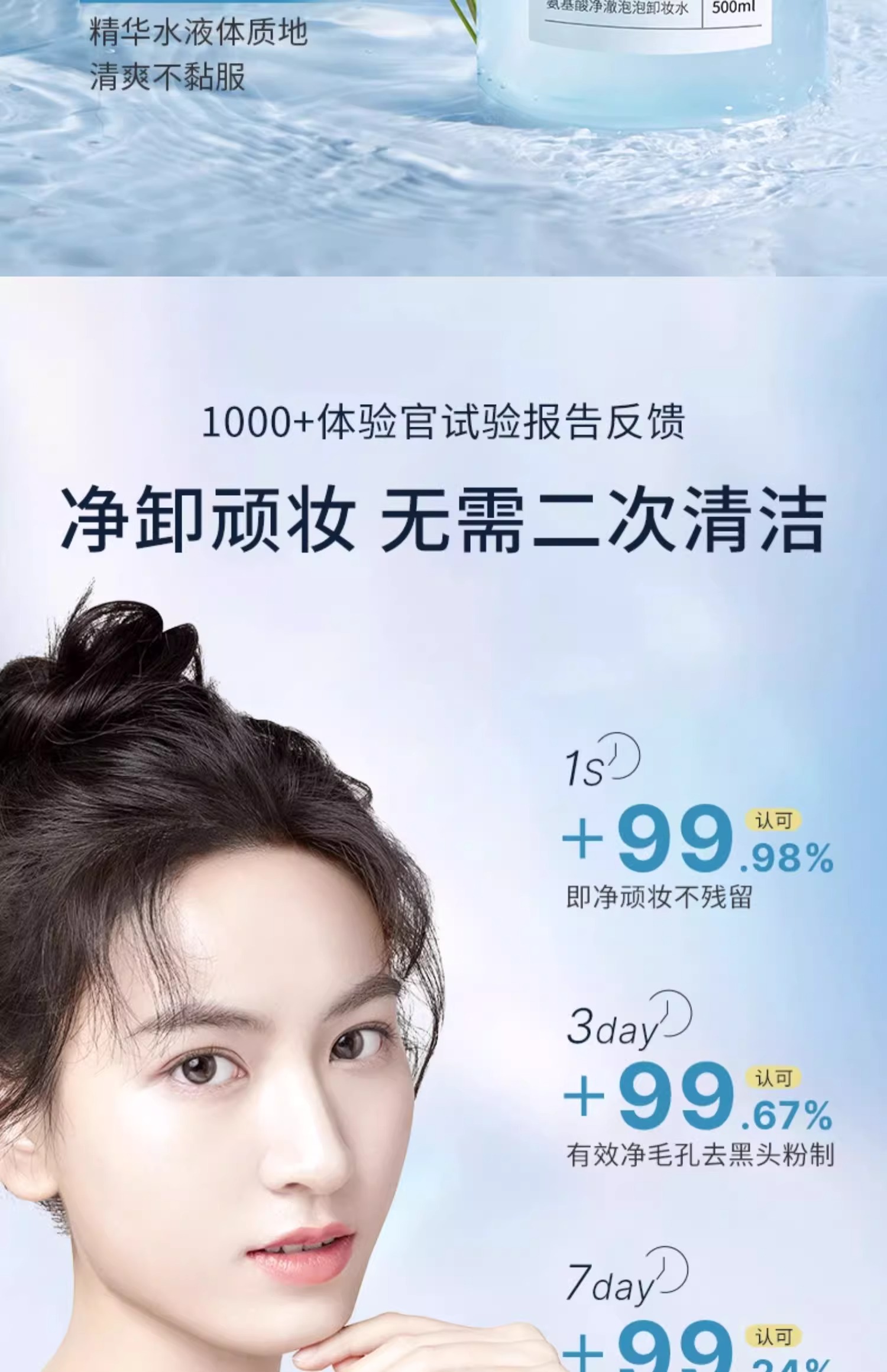 【不辣眼 不闷痘】氨基酸净澈泡泡卸妆水500ml#卸妆水温和氨基酸眼唇脸三合一深层清洁卸妆油官方旗舰店正品