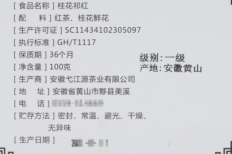 弋江源丨桂花祁红 桂花红茶 一级 100g