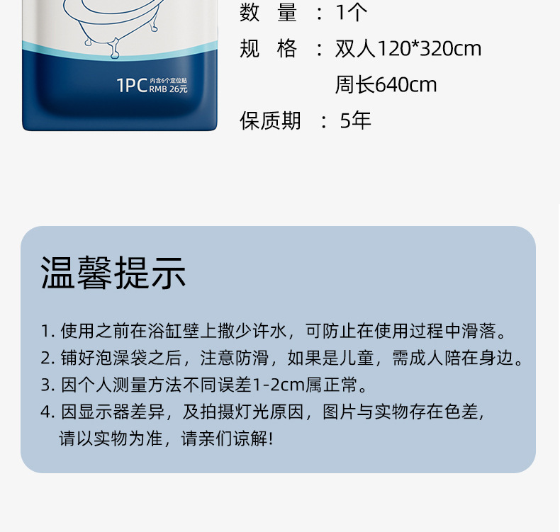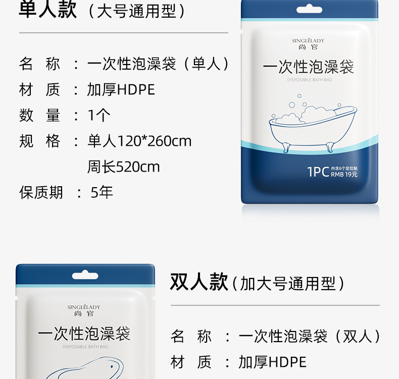 尚官 旅行一次性泡澡袋 特厚洗澡袋浴缸套木桶袋子SPA塑料浴缸膜沐浴袋/个