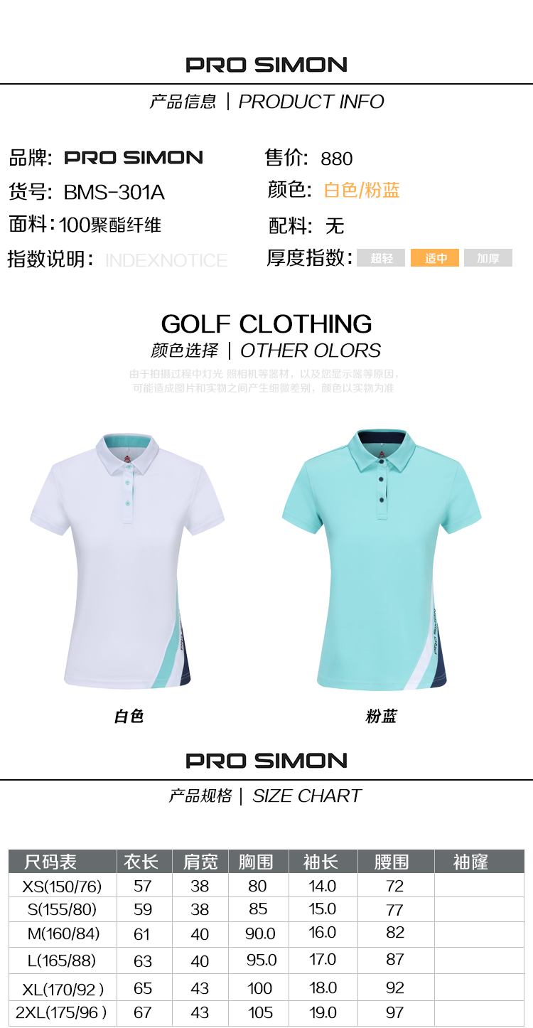 BMS-301A(PROSIMON高尔夫春夏女款简约风翻领POLO衫)