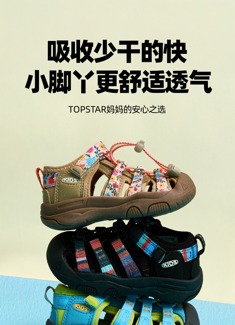 【夏上新】TOPSTAR儿童凉鞋透气男童户外鞋女童包头鞋防滑网鞋7016