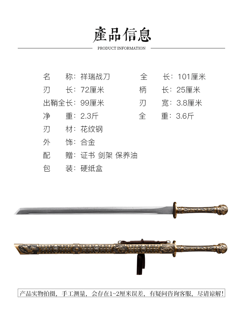 祥瑞战刀 花纹钢 唐横刀剑 龙泉沈广隆一体刀剑传统刀剑 未开刃