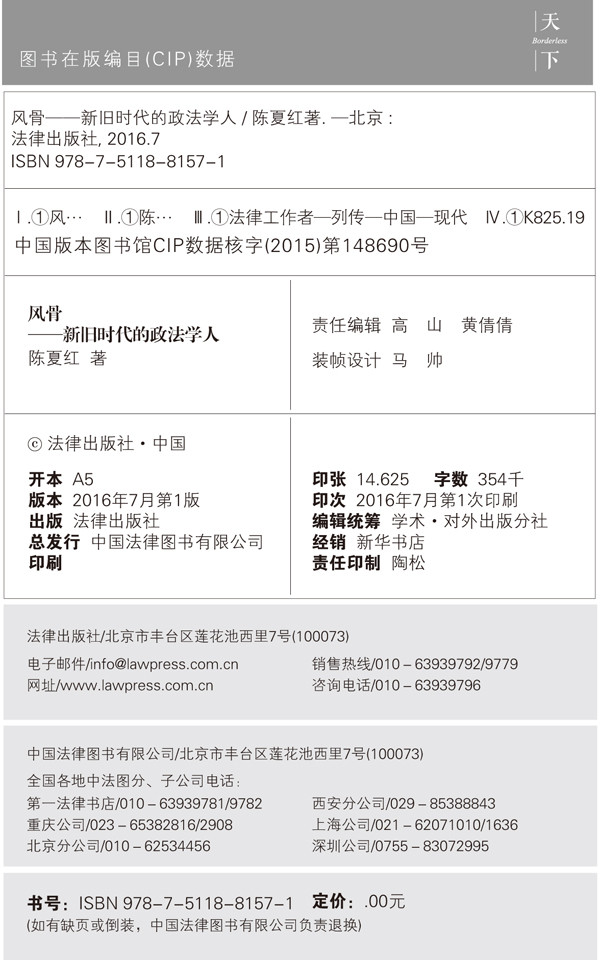 翻开手边的这本陈夏红的新著《风骨:新旧时代的政法学人》,映入眼帘的都是我所知道的人物,有的还能清晰地辨认他们的相貌、音容、举止,有的连他们的相貌都记不清了。