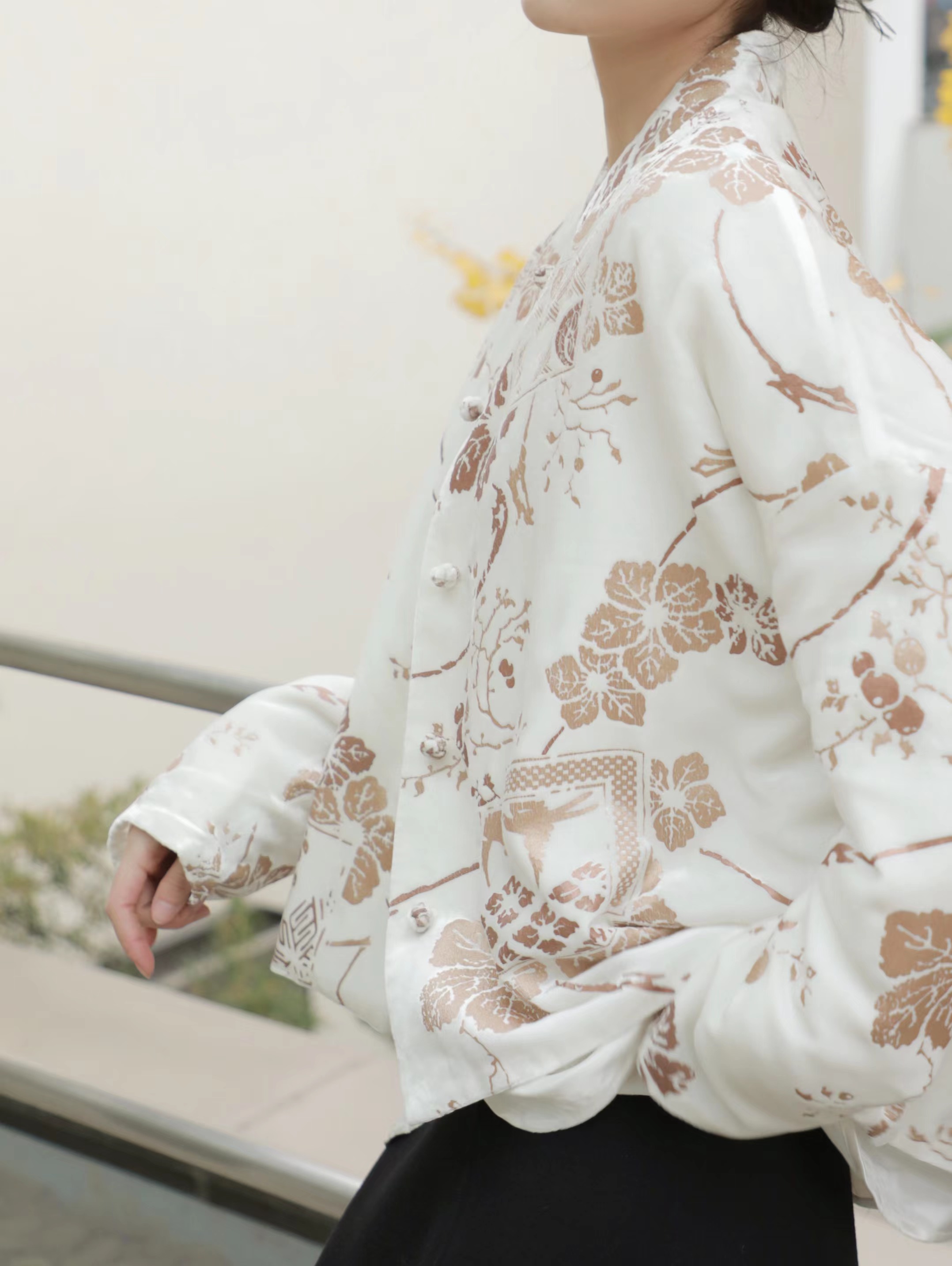 盛唐牡丹 | 松鼠葡萄真丝立领对襟外套(不夹棉-松鼠葡萄闪光面料款)