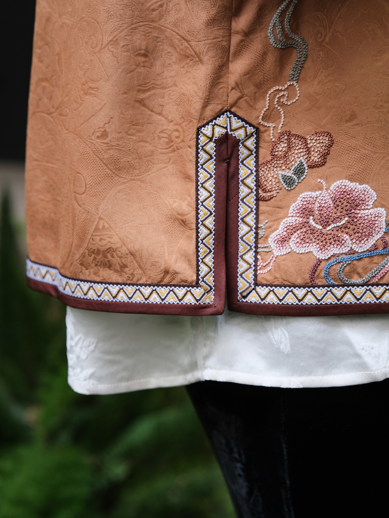 盛唐牡丹 |宋锦八达晕纹交叉外套